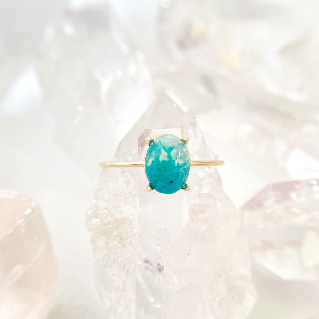 K10 天然クリソコーラクォーツリング (選べるサイズ) 原石から磨いた1点ものジュエリー!