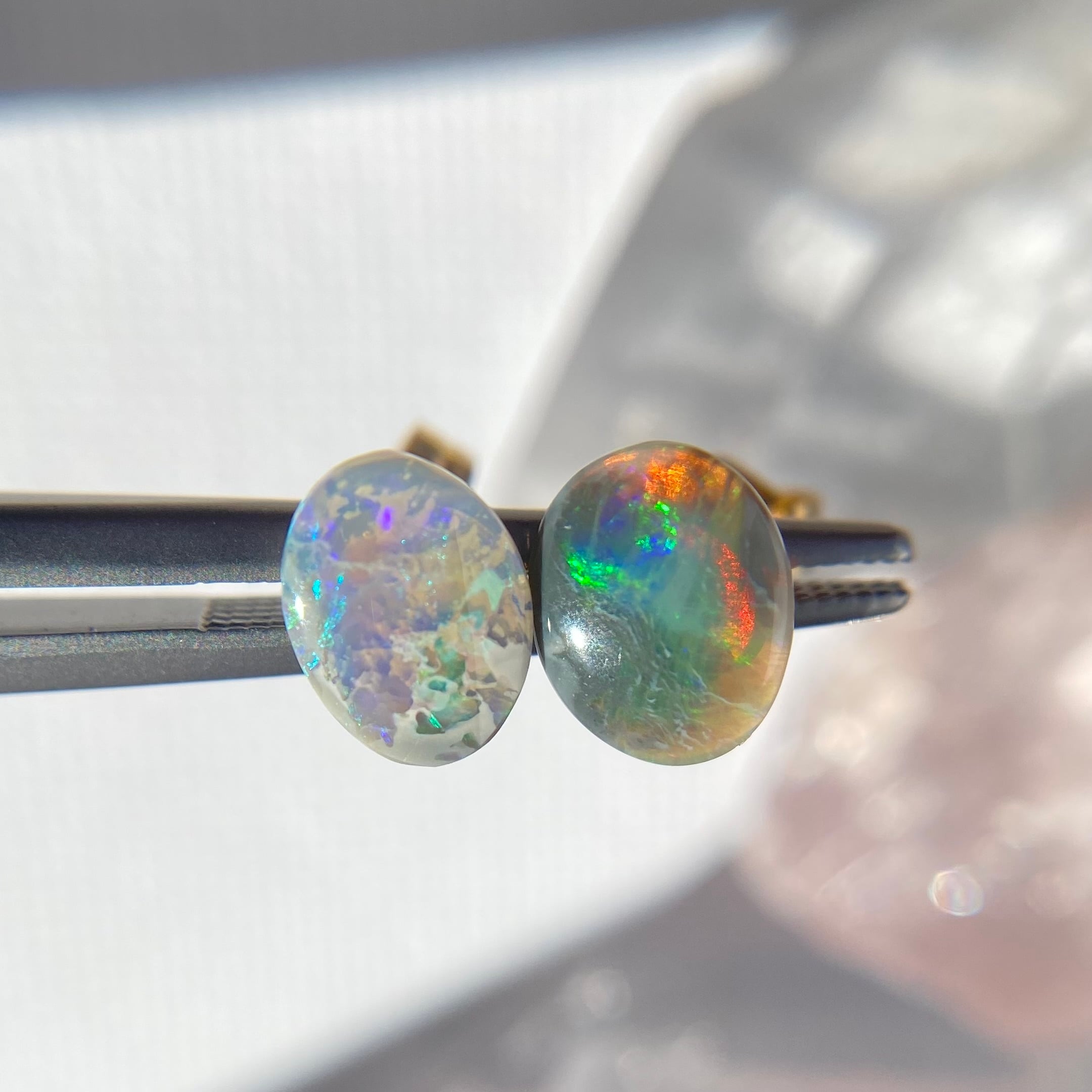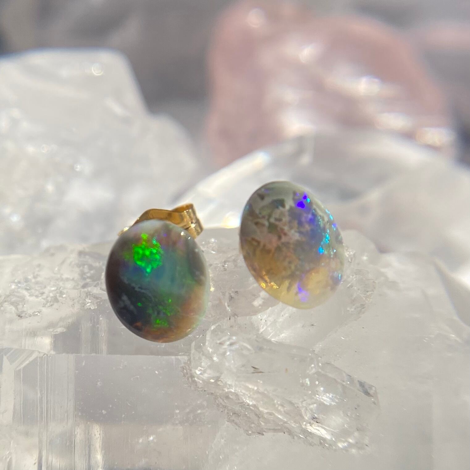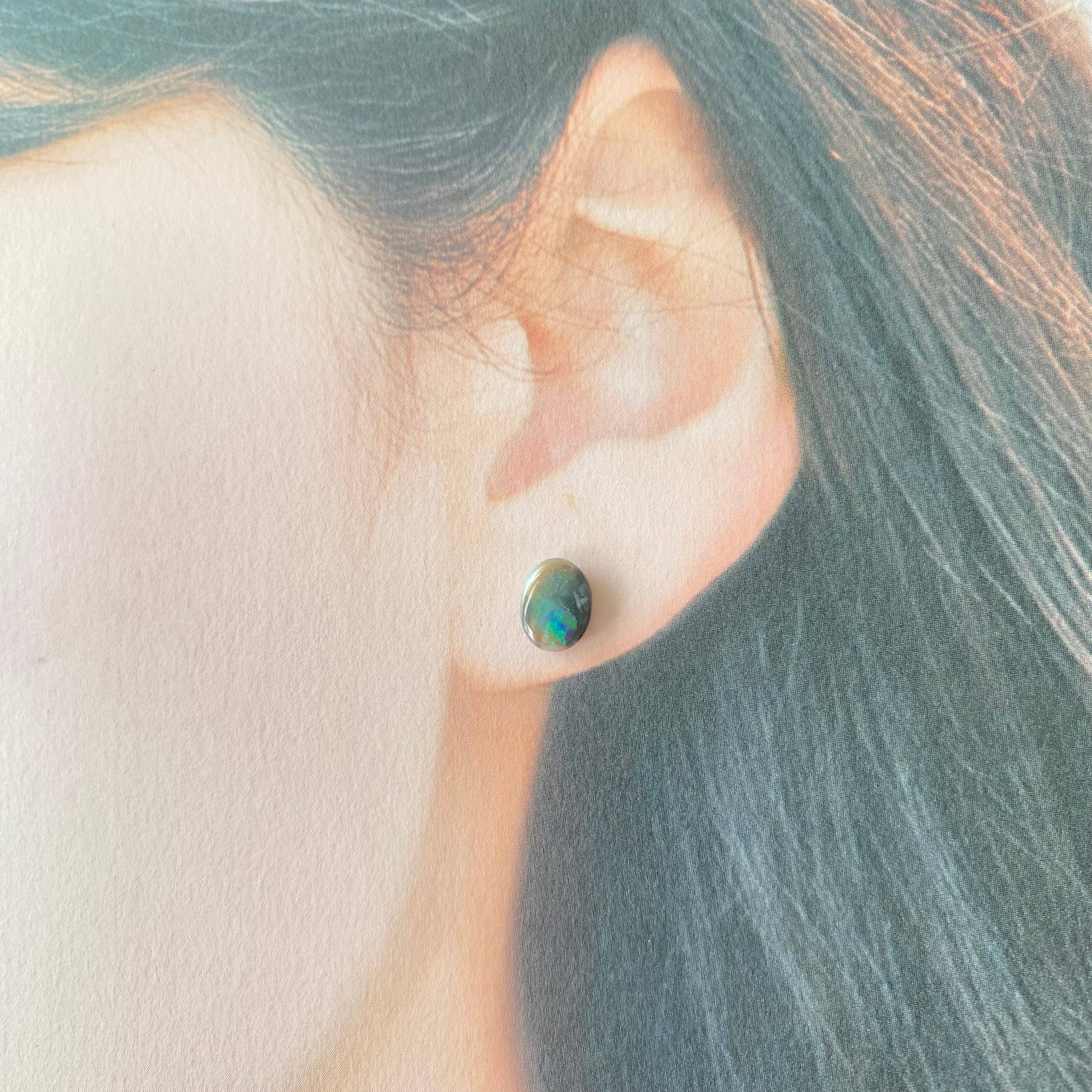 天然ブラックオパールピアス☆オーストラリア産原石から磨いた1点もの!