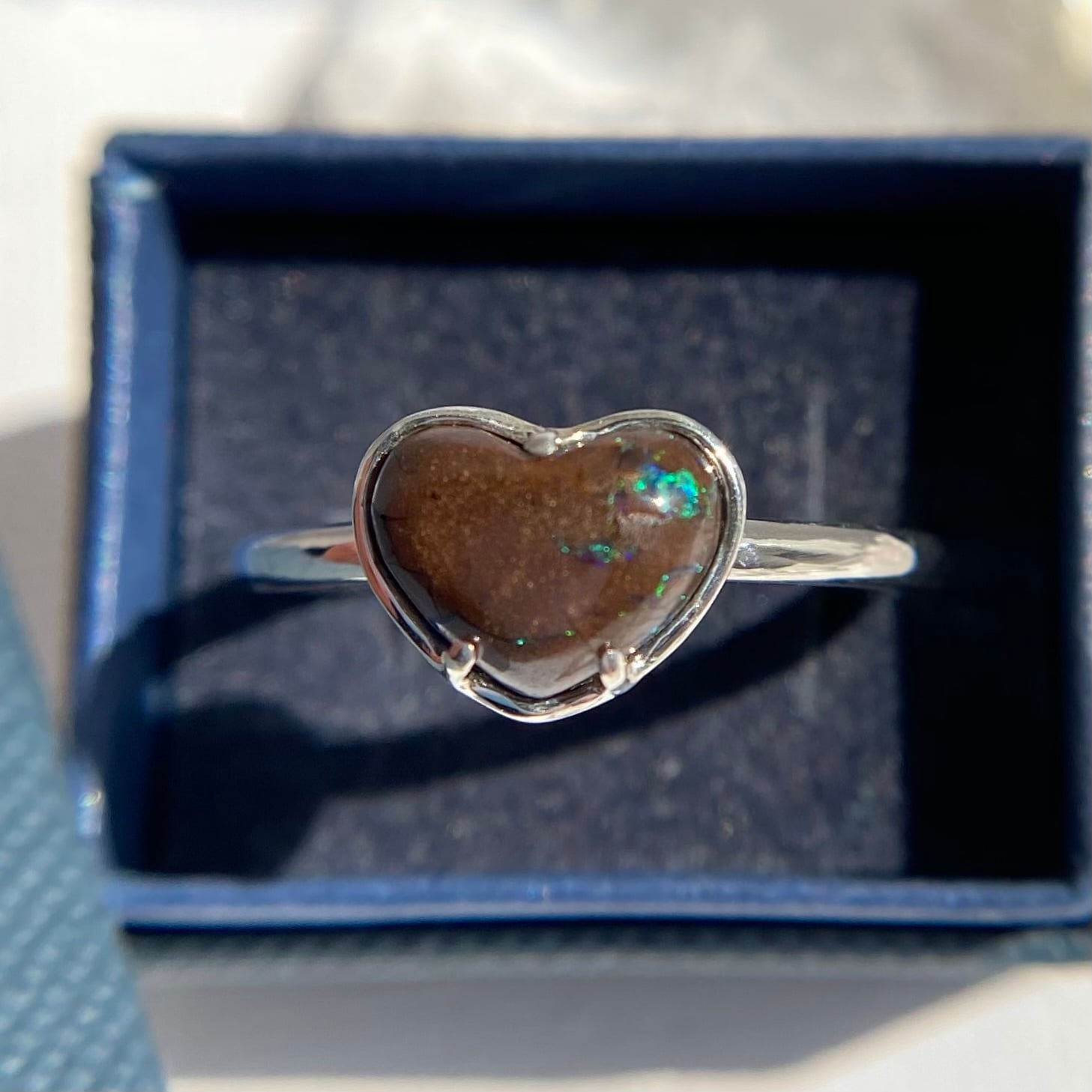 天然ボルダーオパールハートシルバーリング☆フリーサイズ☆オーストラリア産原石から磨いた1点もの!
