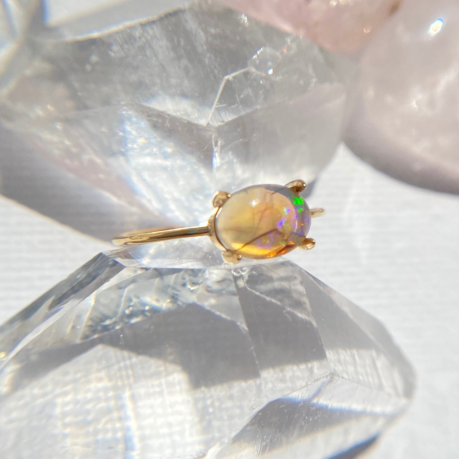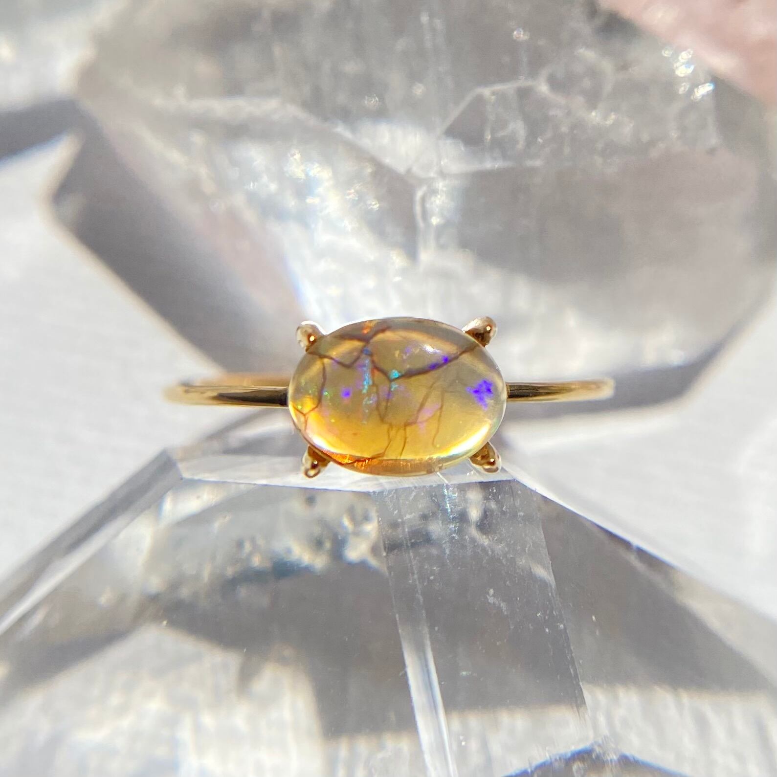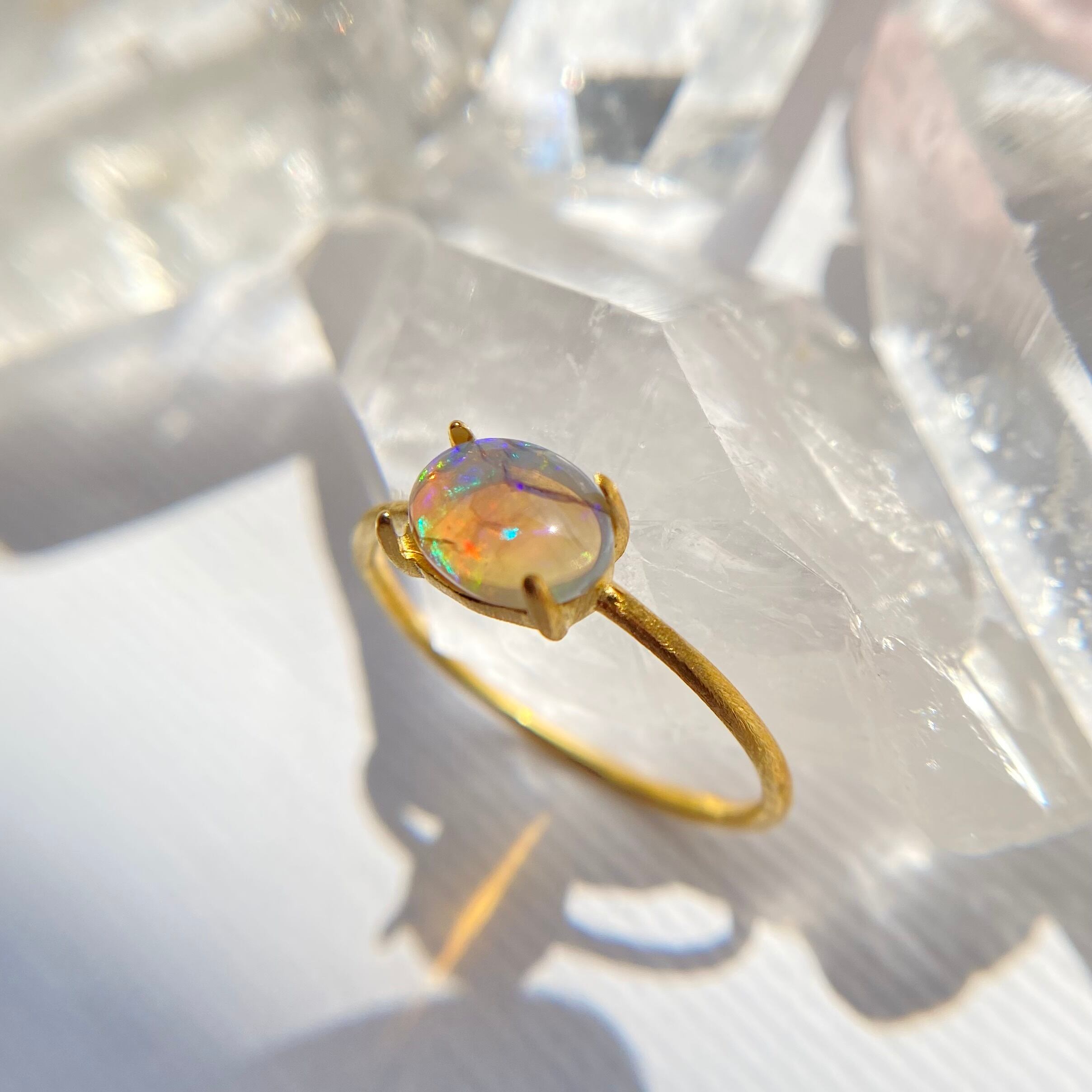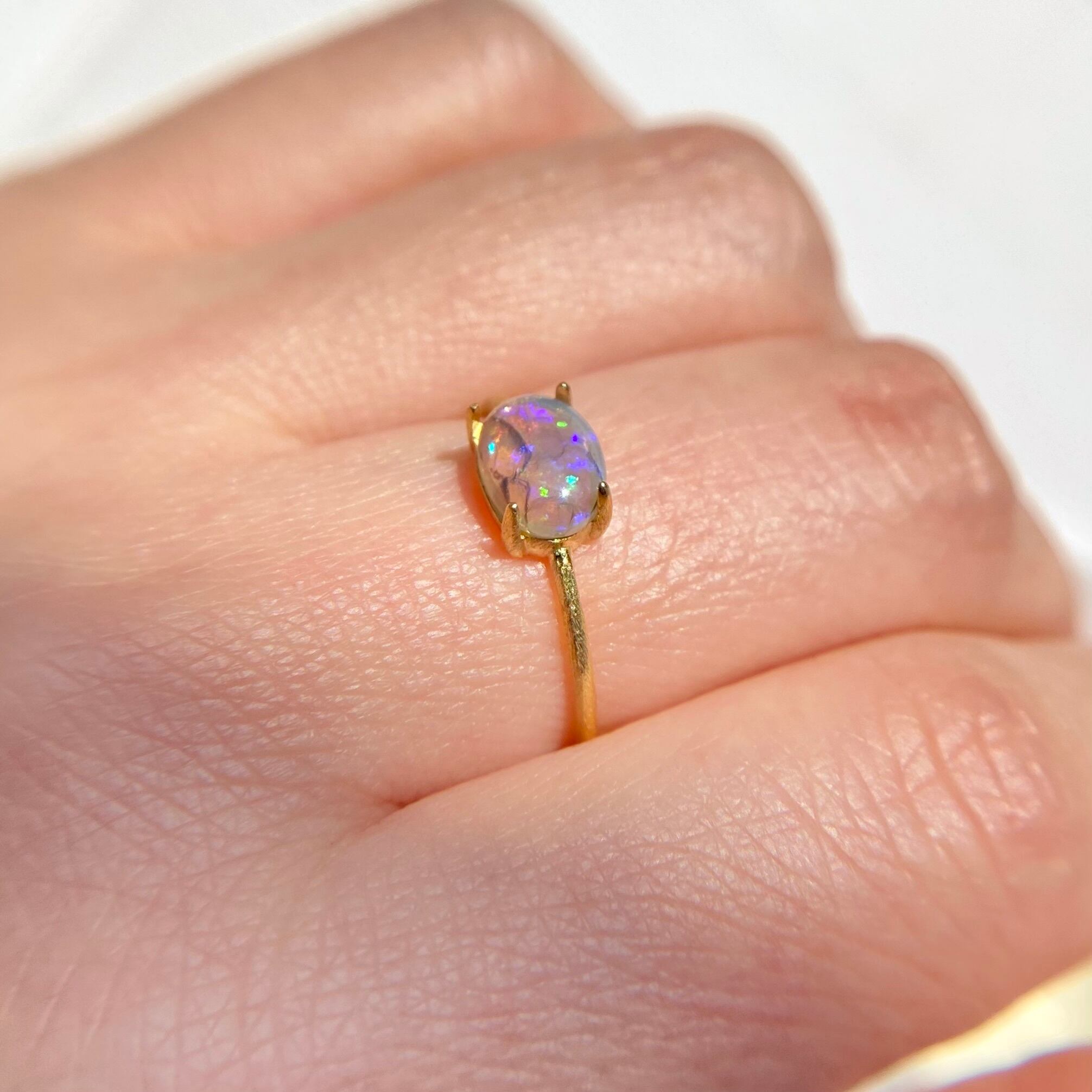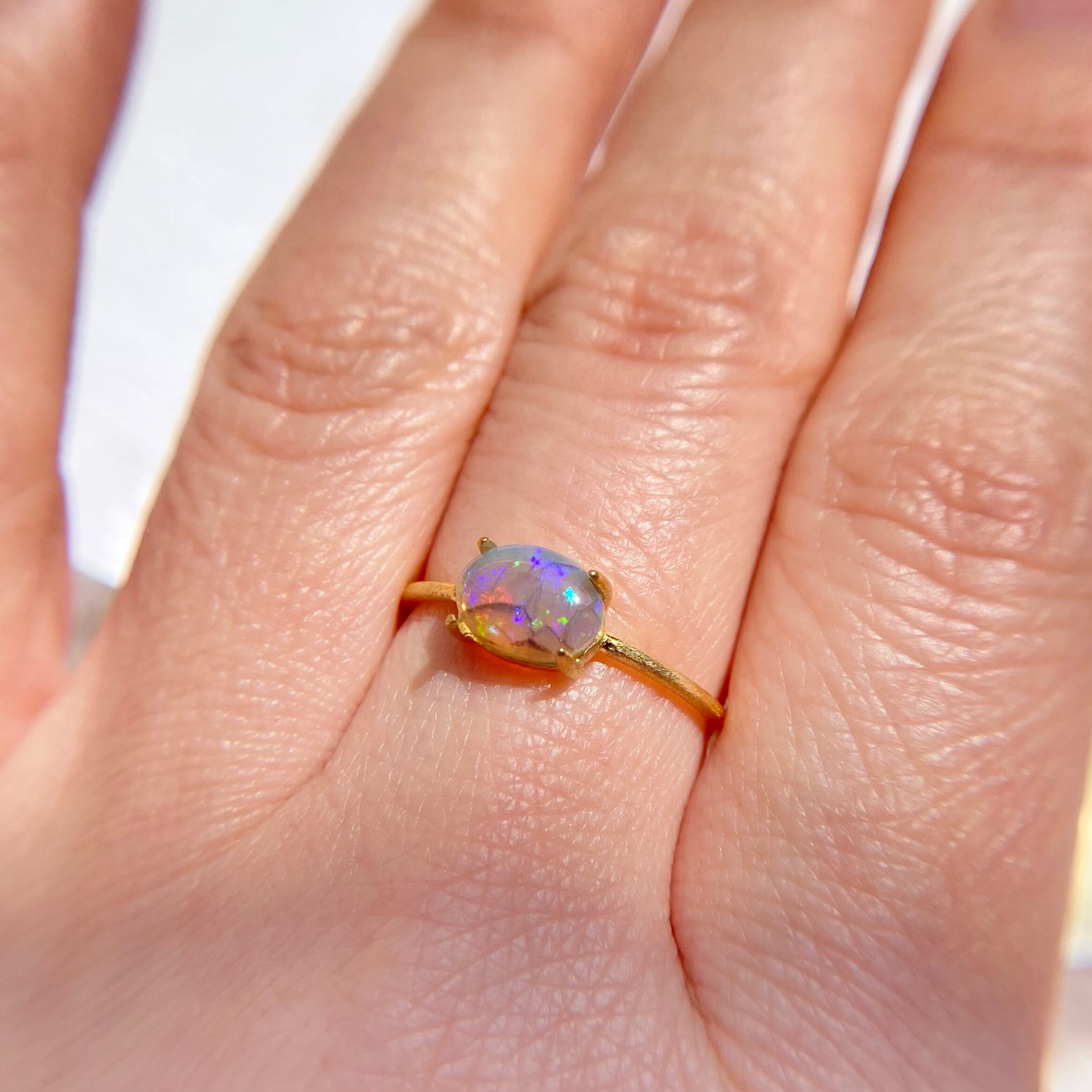 天然オパールリング (選べるサイズと素材)オーストラリア産原石から磨いた1点もの!