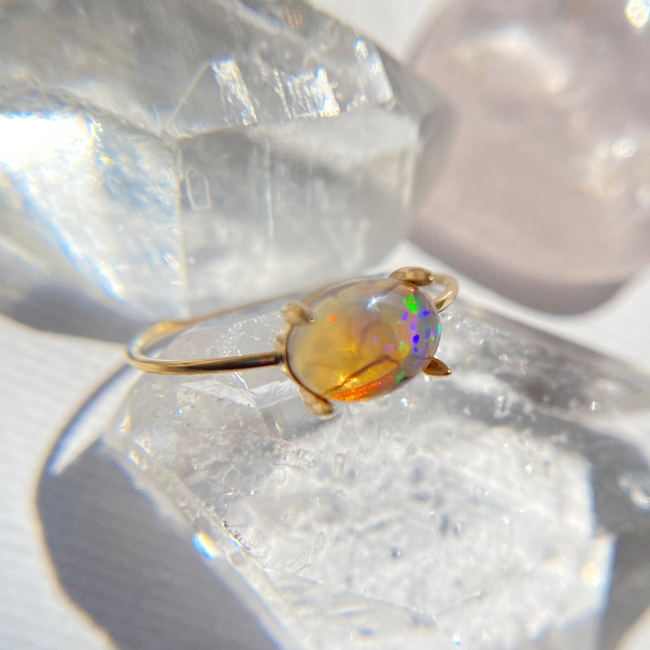 オパールは太陽光で遊色がとても綺麗に見えます。天然オパールの遊色の変化をお楽しみ下さい。