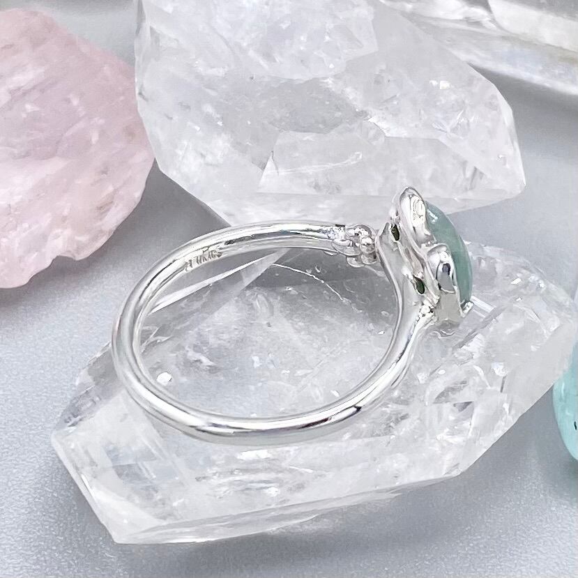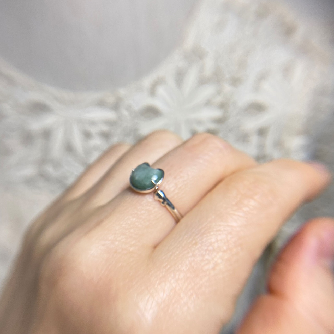 ミャンマー産原石から丁寧に磨き上げられたこのリングは、着け心地にもこだわった仕上がりで一点ものならではの特別感を楽しんでいただけます。
