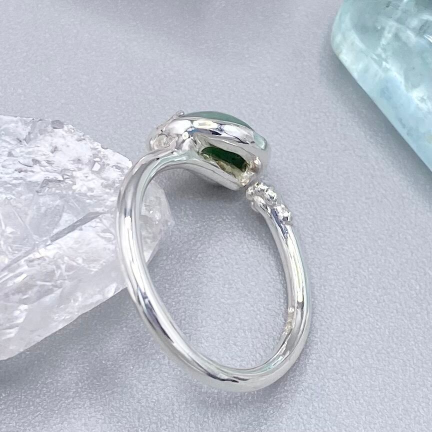 天然翡翠の猫ちゃんシルバーリング☆原石から磨いた1点ものジュエリー!
