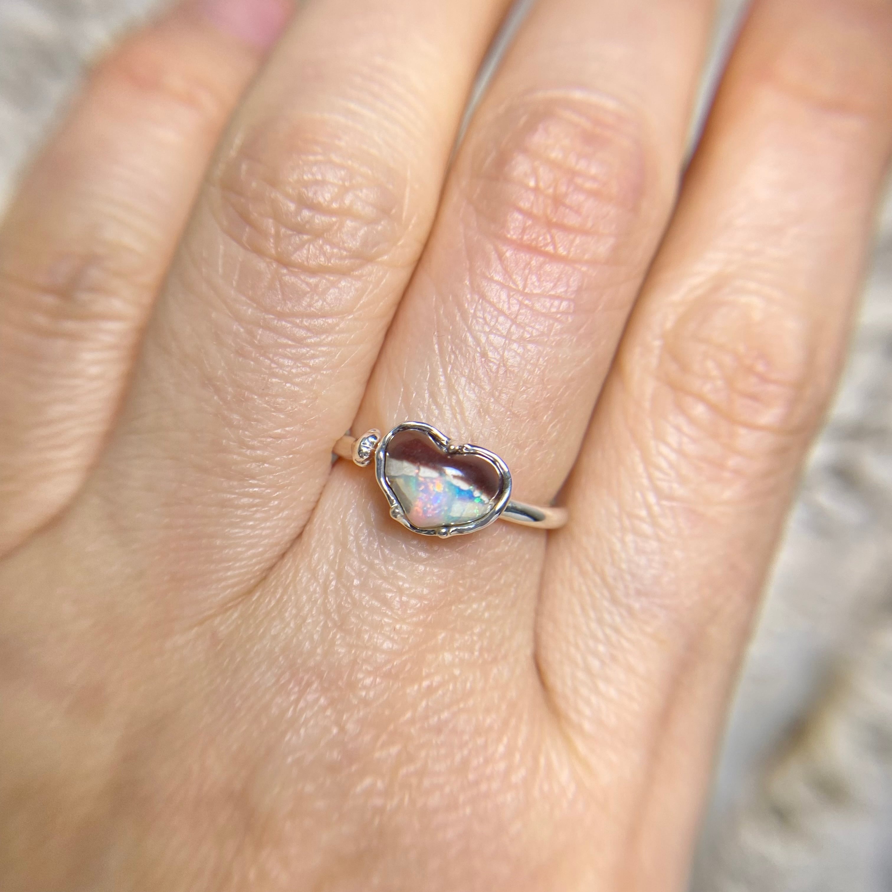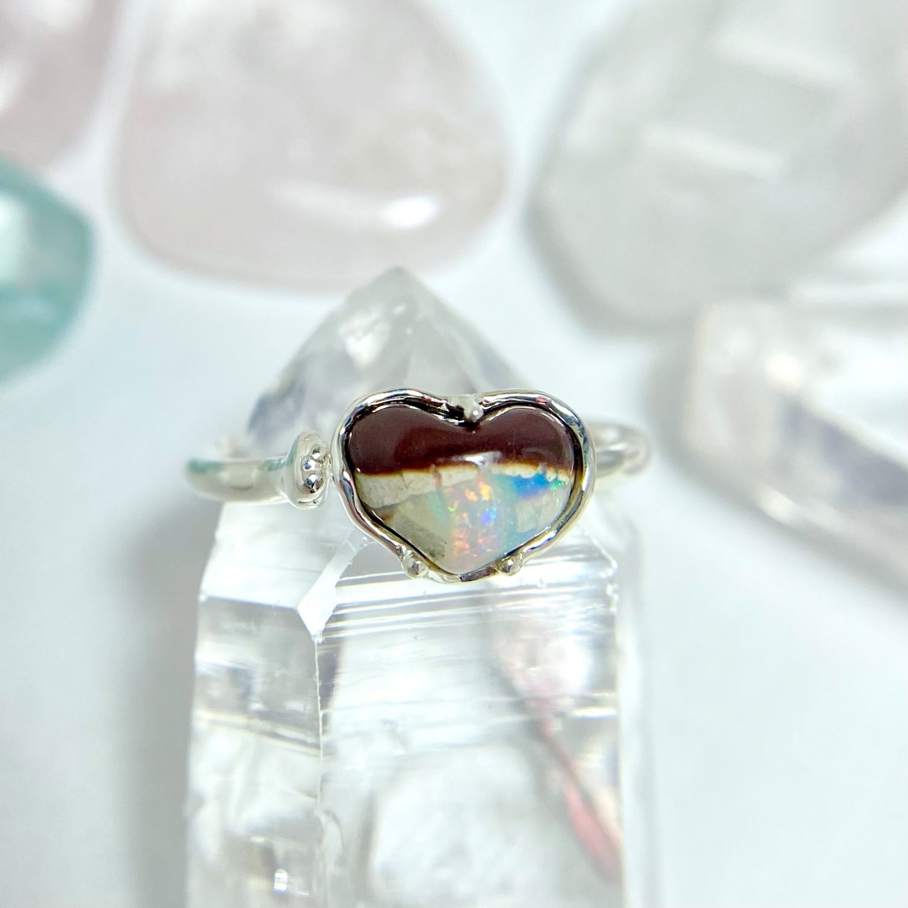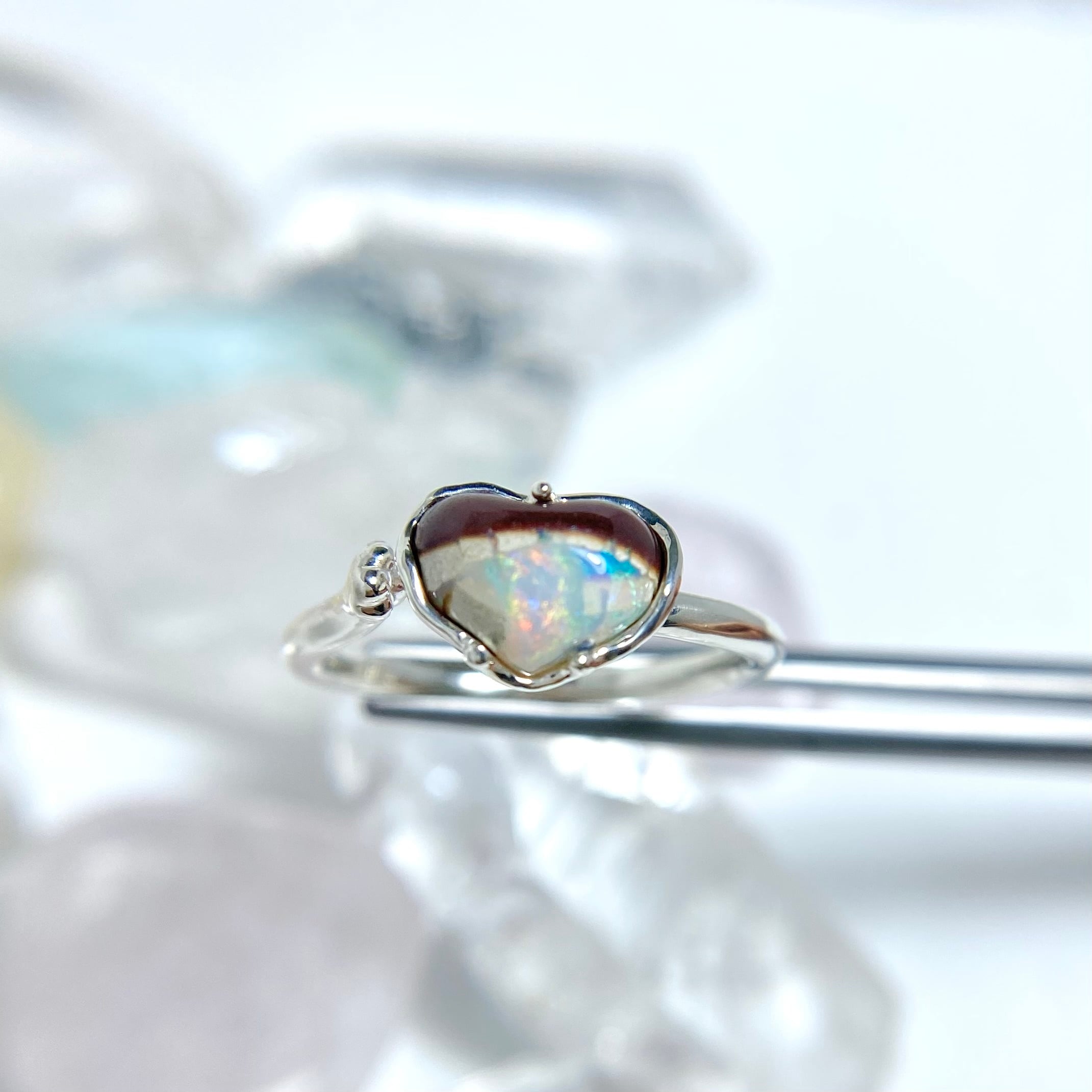 オーストラリア・Yowah産ボルダーオパール原石から丁寧にハート型に磨き上げられたこのリングは、着け心地にもこだわった仕上がりで一点ものならではの特別感を楽しんでいただけます。