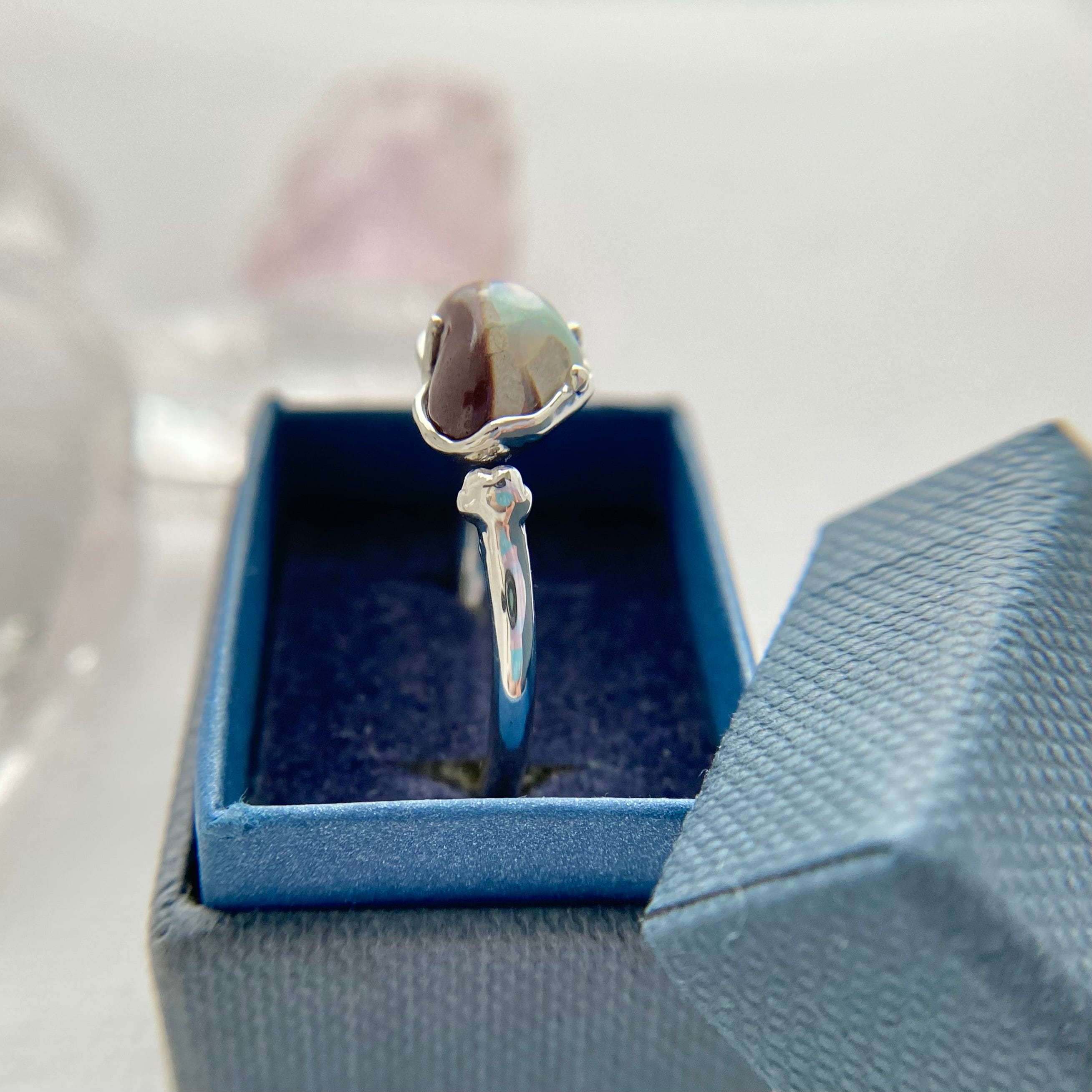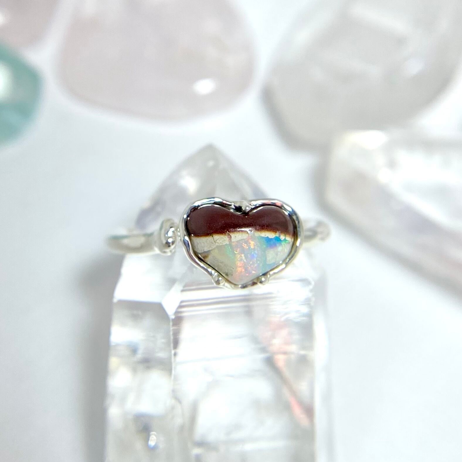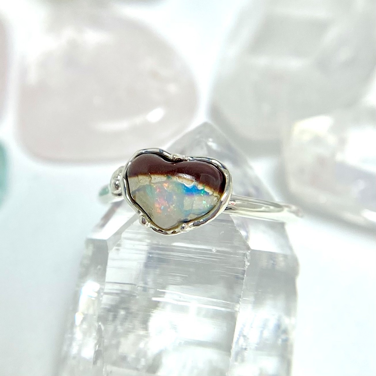オーストラリア・Yowah産ボルダーオパール原石から丁寧にハート型に磨き上げられたこのリングは、着け心地にもこだわった仕上がりで一点ものならではの特別感を楽しんでいただけます。