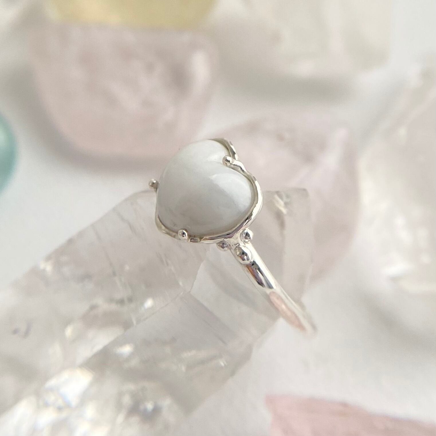 糸魚川翡翠の原石をハートに磨き上げたスクウェアシルバーリング!
