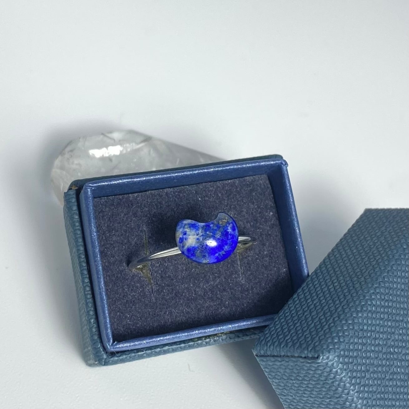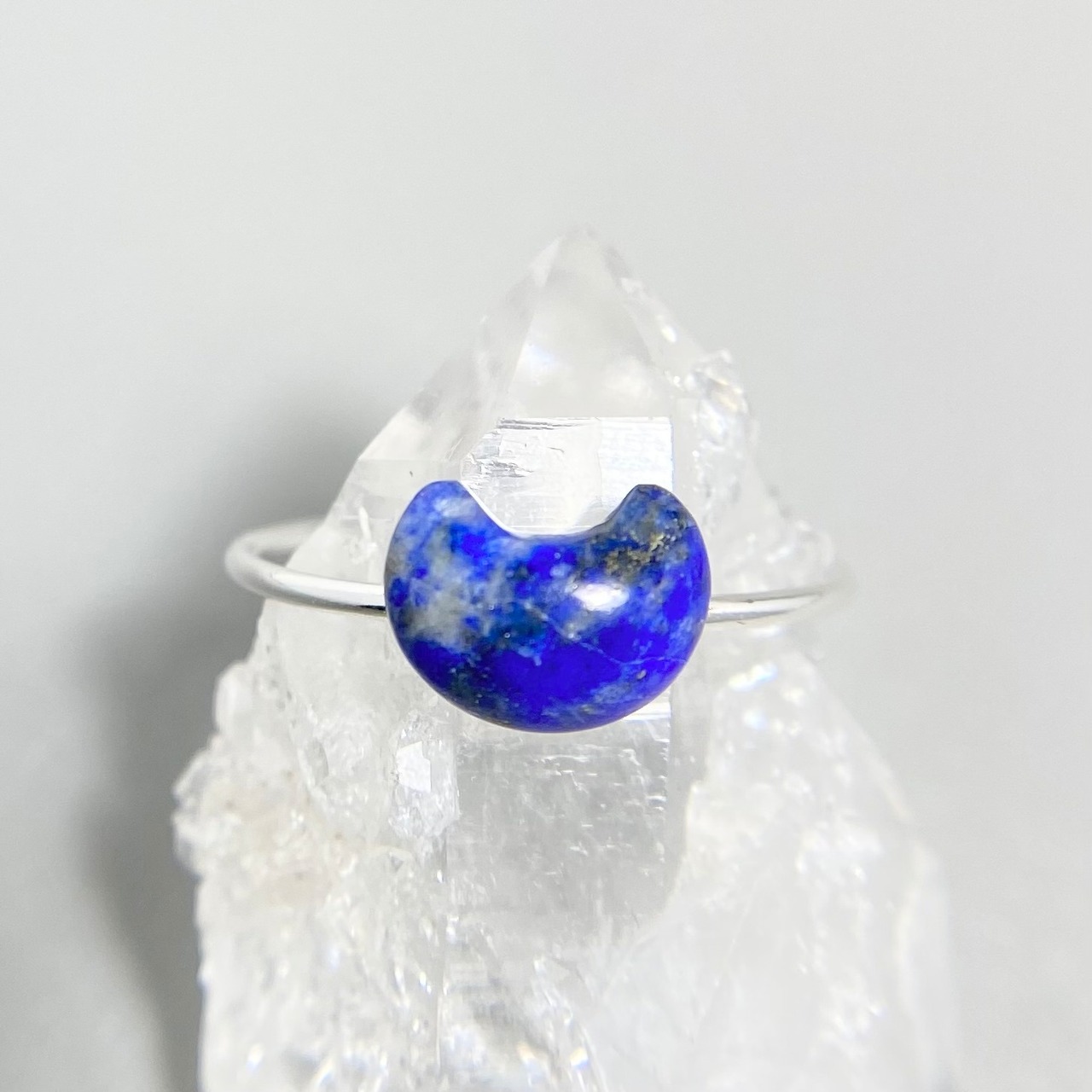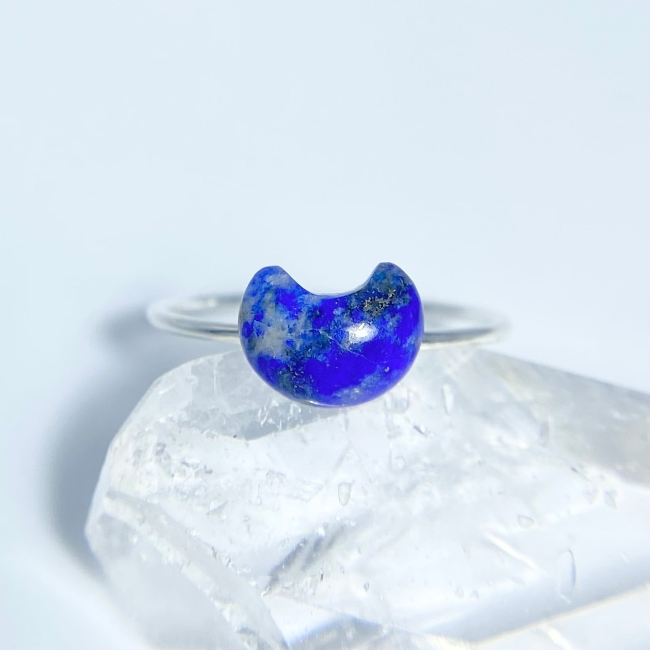天然ラピスラズリお月さまとハートのリング 17号 原石から磨いた1点!