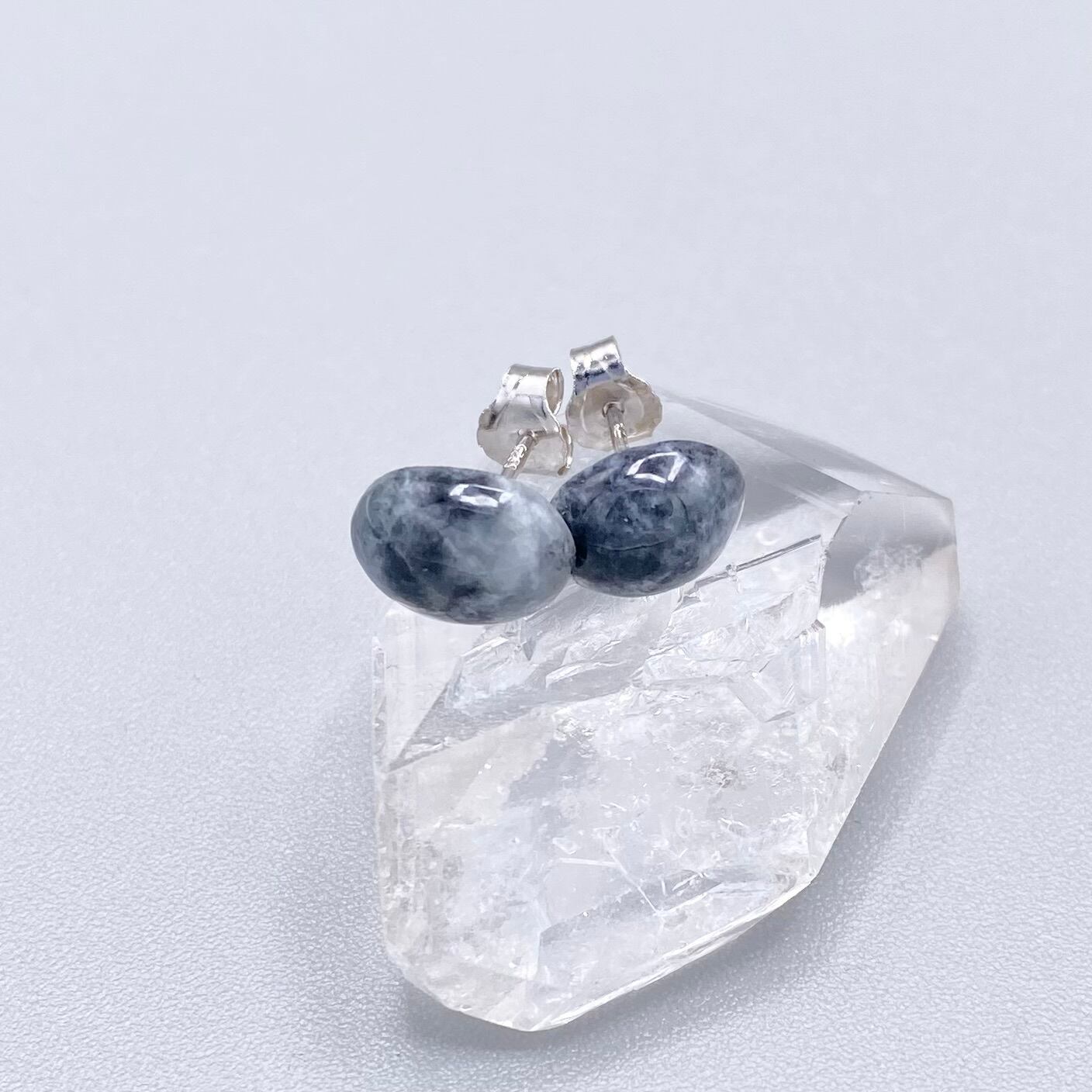 糸魚川黒翡翠のシルバーピアス☆原石から磨いた1点もの!