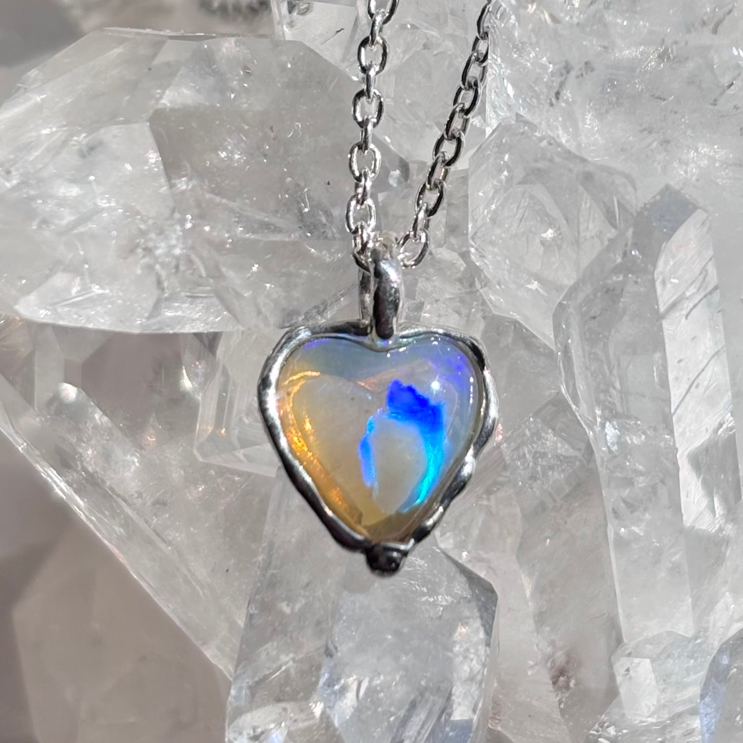 Lightning Ridge産 天然オパール × SV925 シルバーハートネックレス