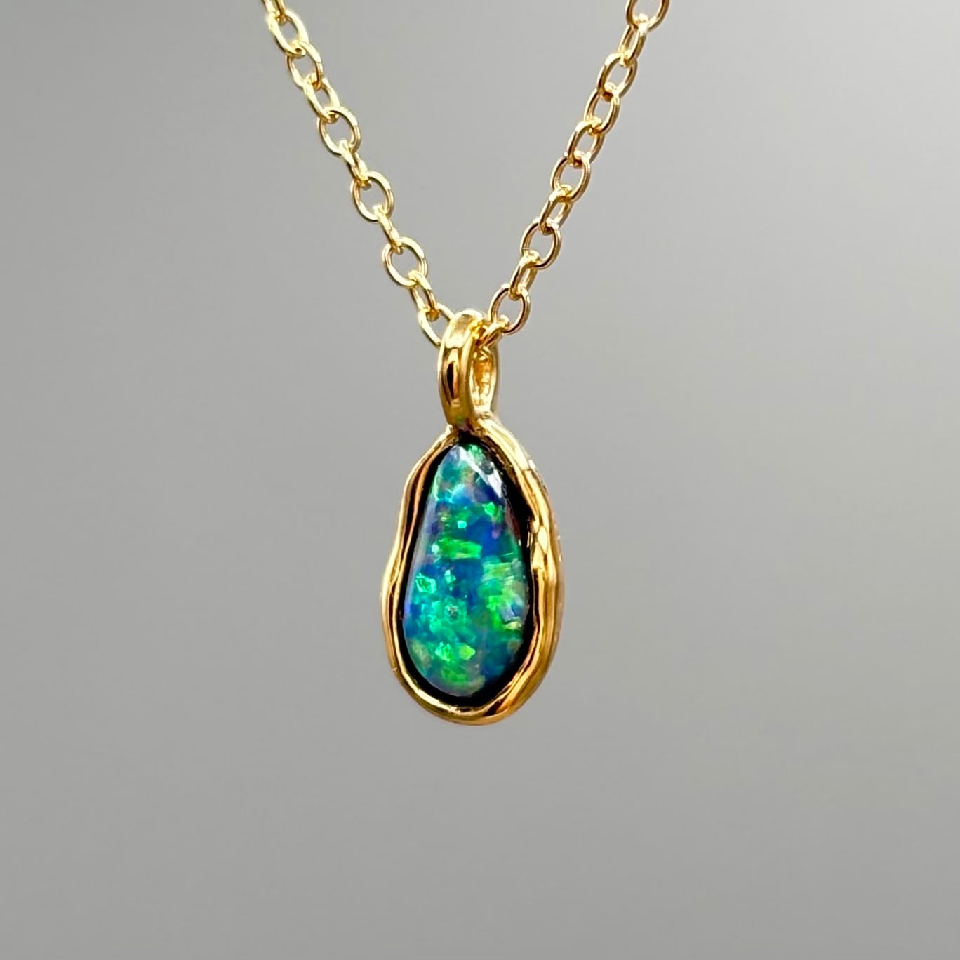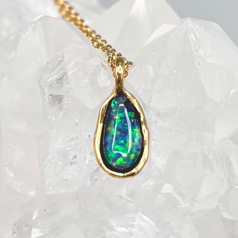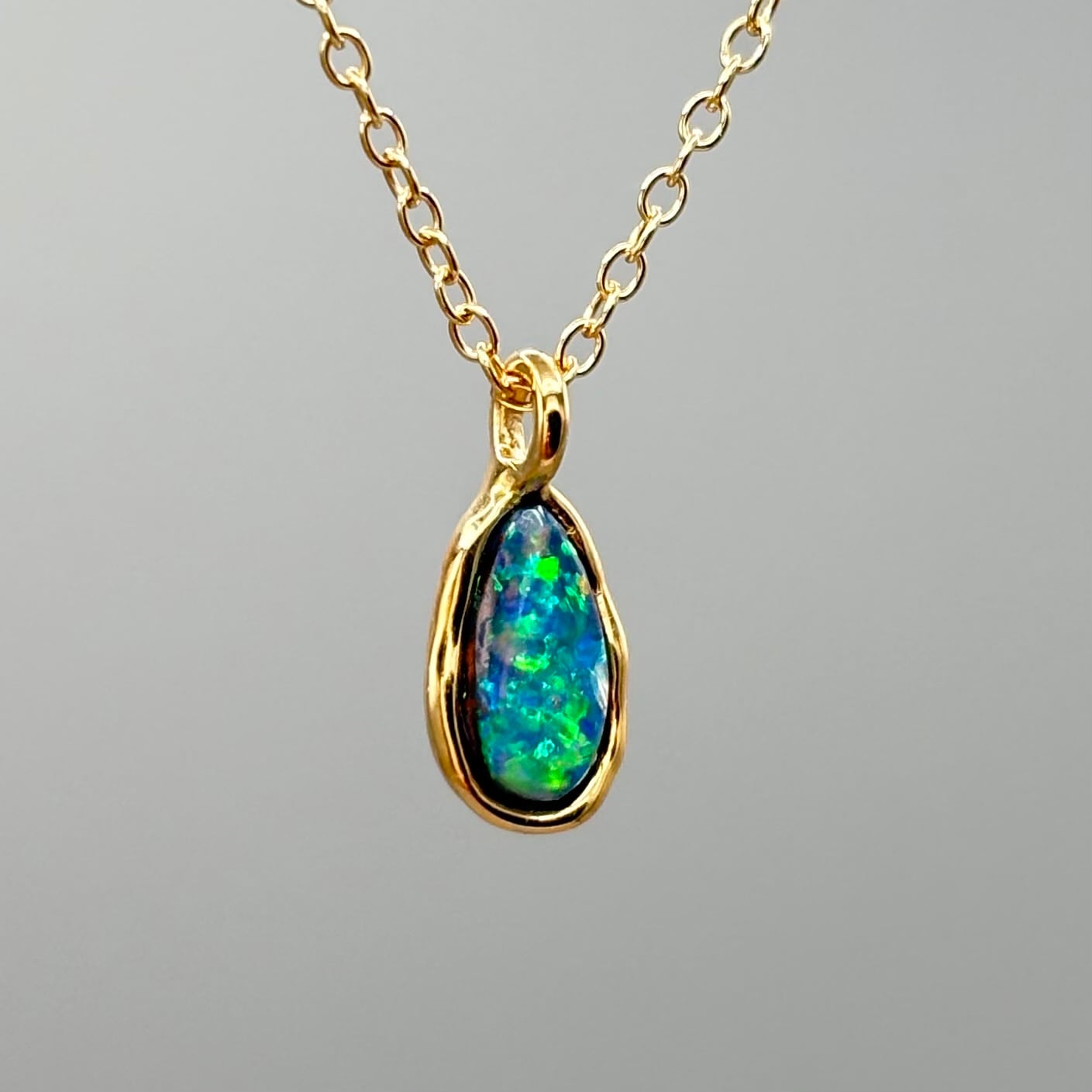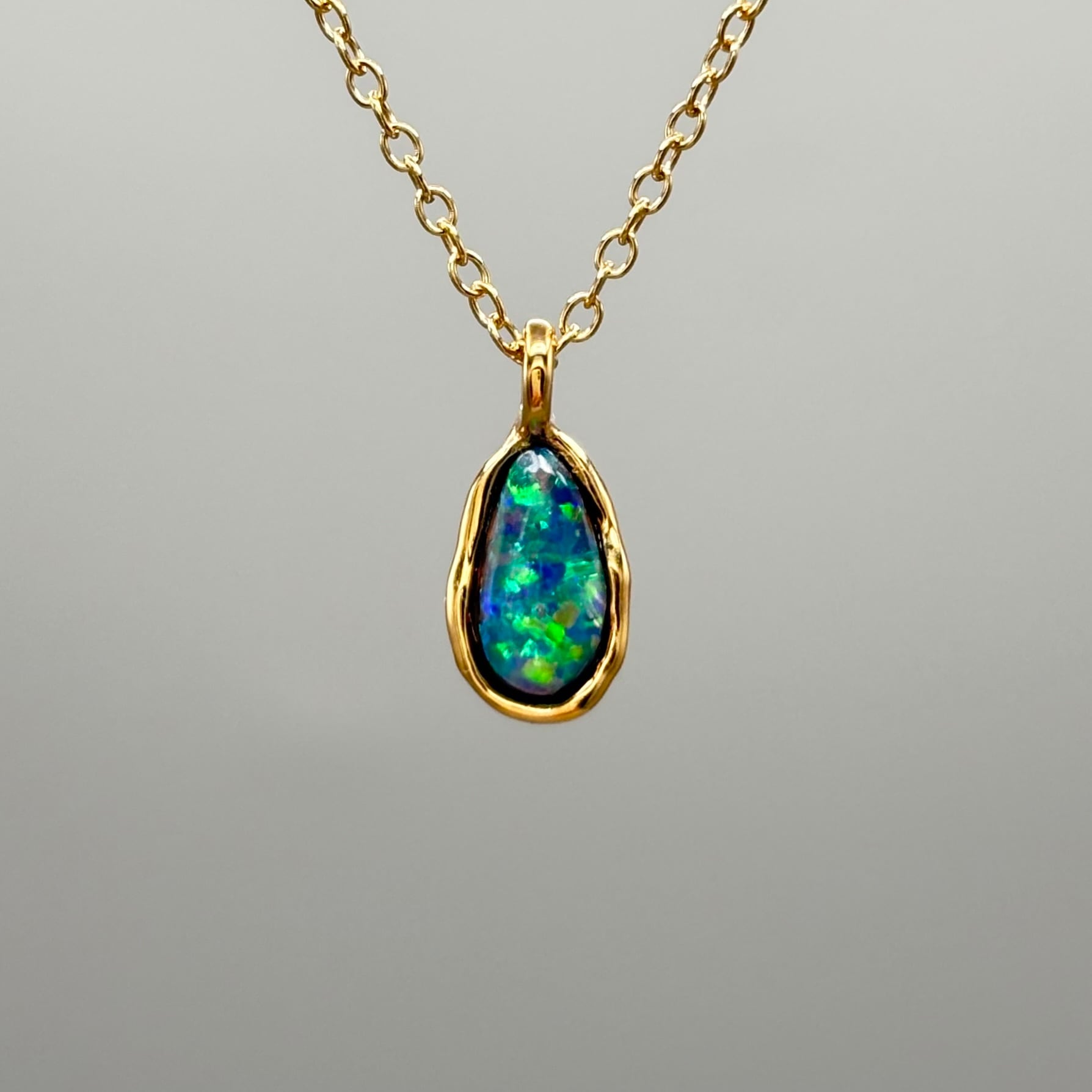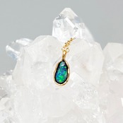 大地の煌めき|Yowah産 ボルダーオパールネックレス(グリーン遊色・原石から研磨・一点物)