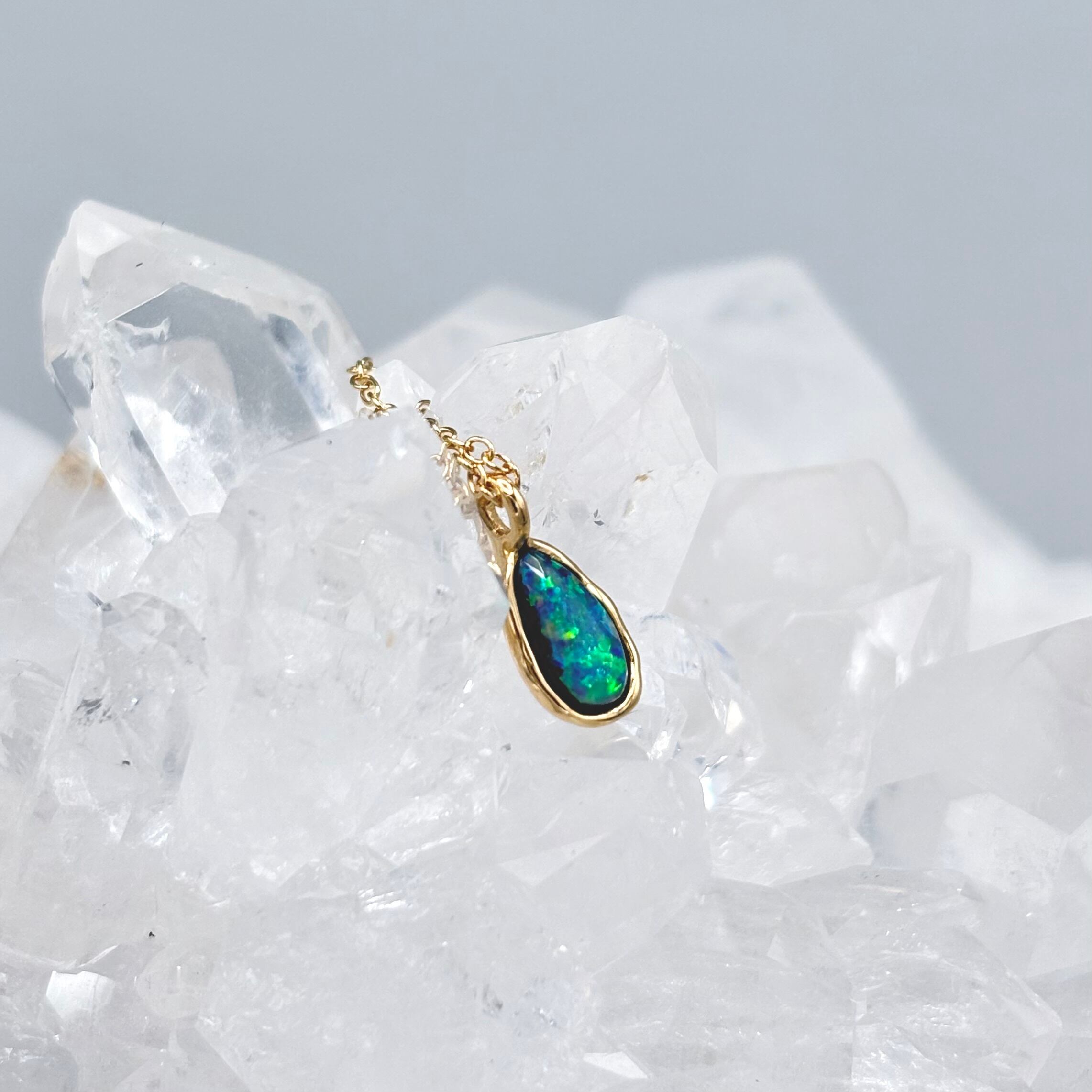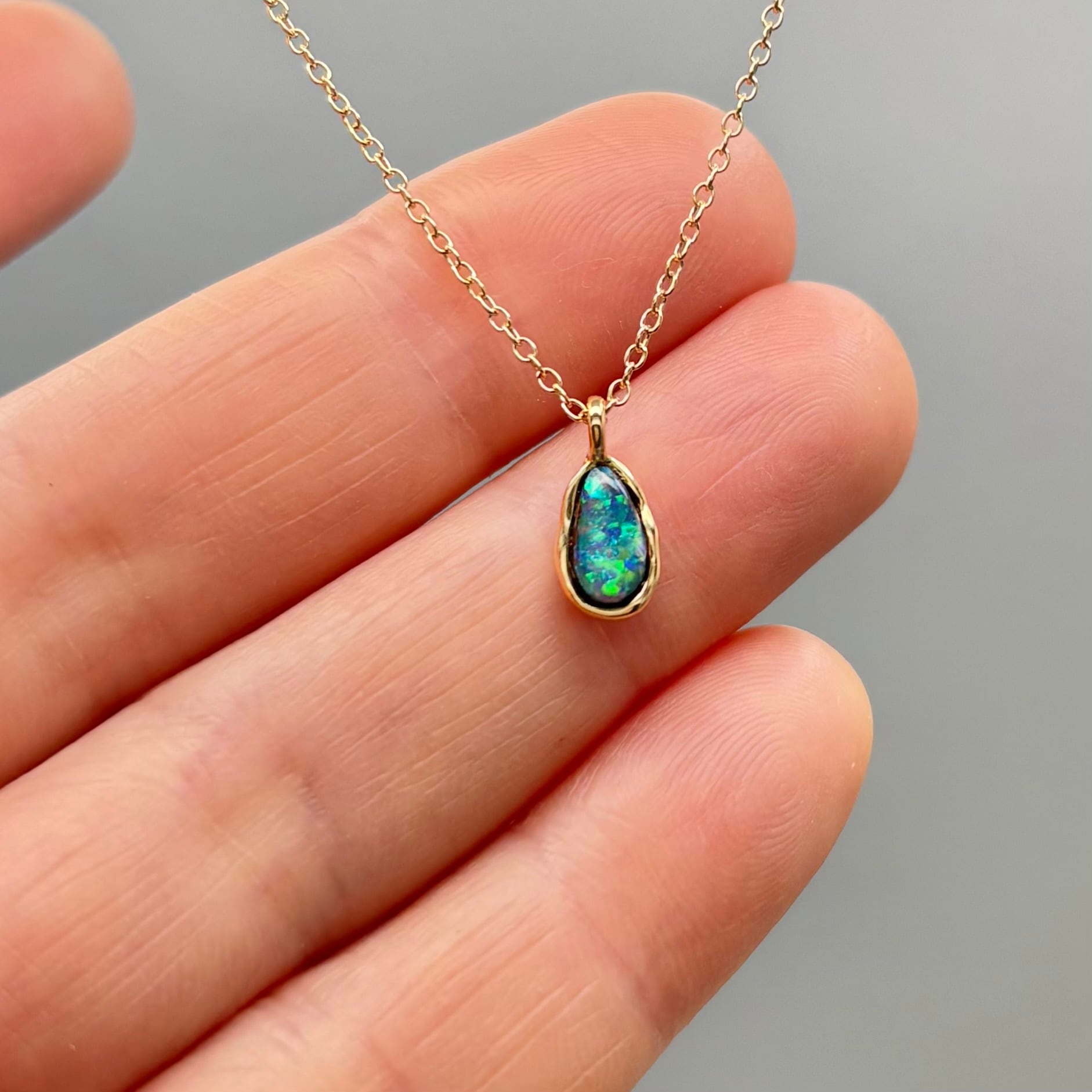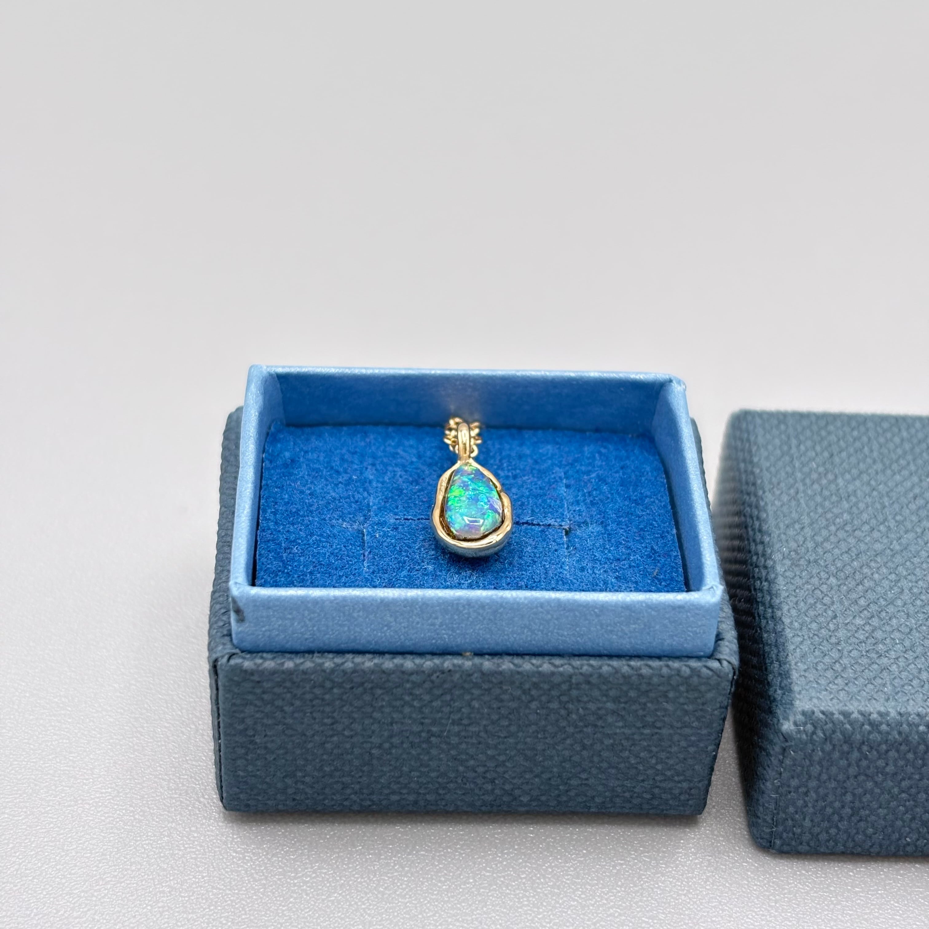 大地の煌めき|Yowah産 ボルダーオパールネックレス(グリーン遊色・原石から研磨・一点物)