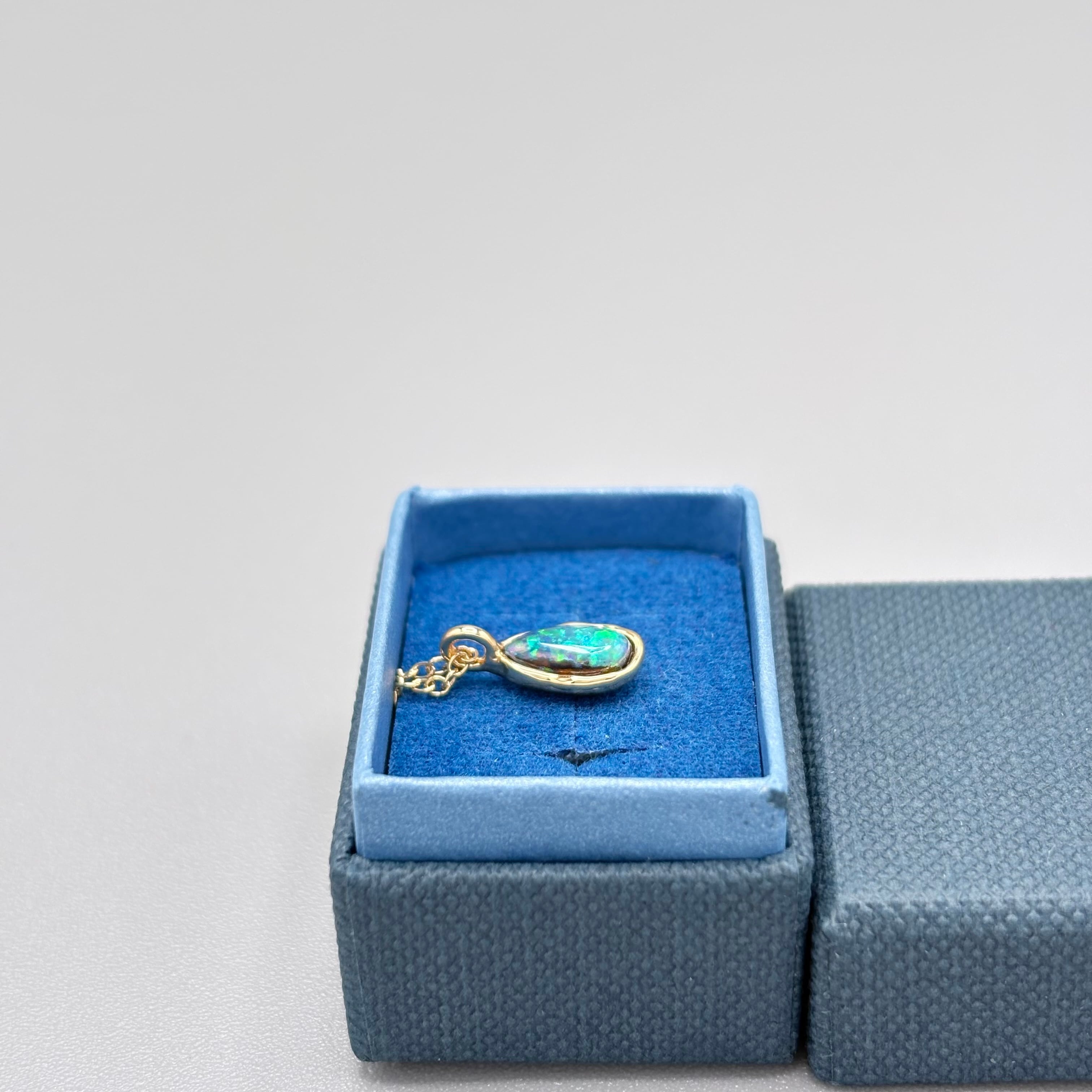 深みのあるブラウンの母岩に、鮮やかなグリーンの遊色が浮かび上がるボルダーオパール。
