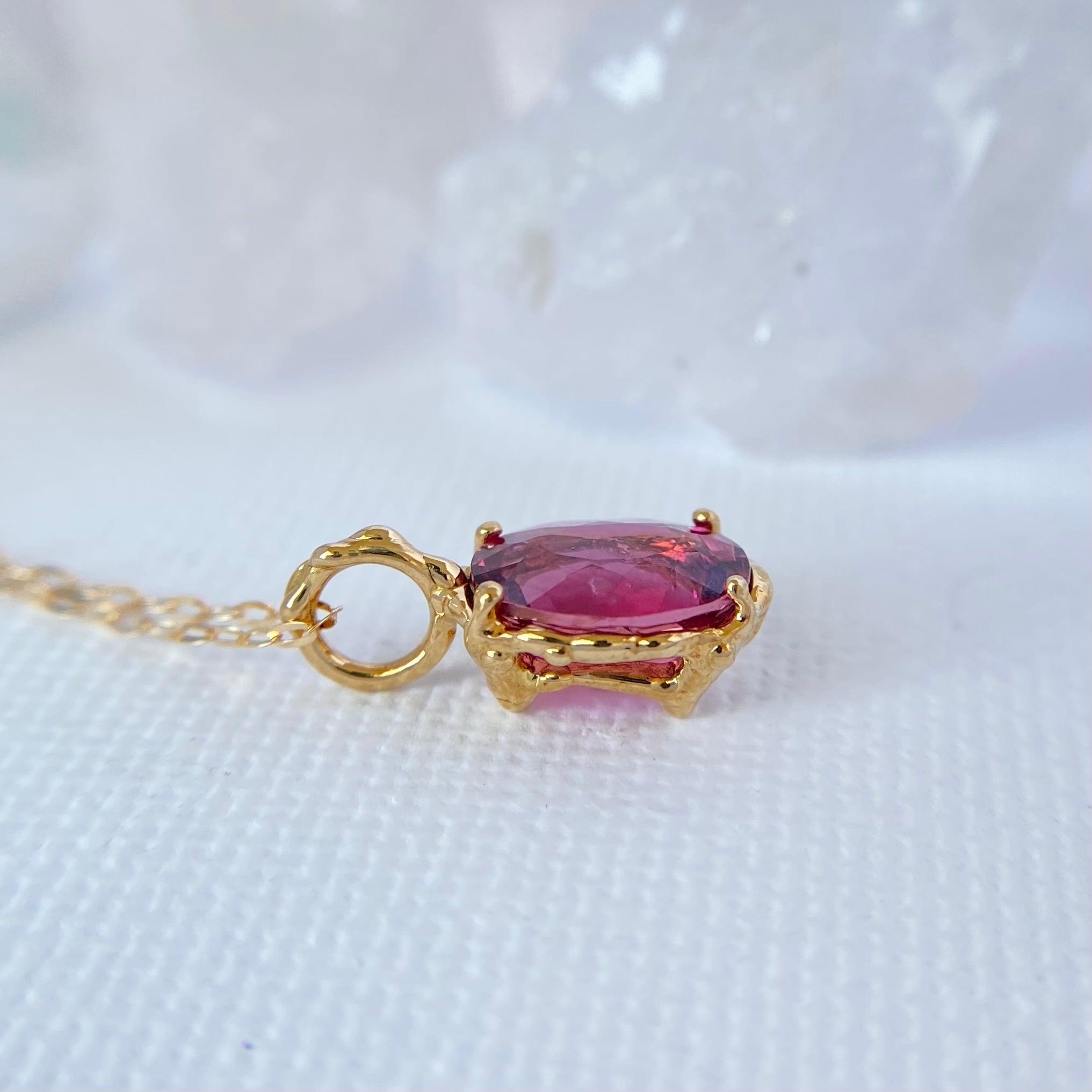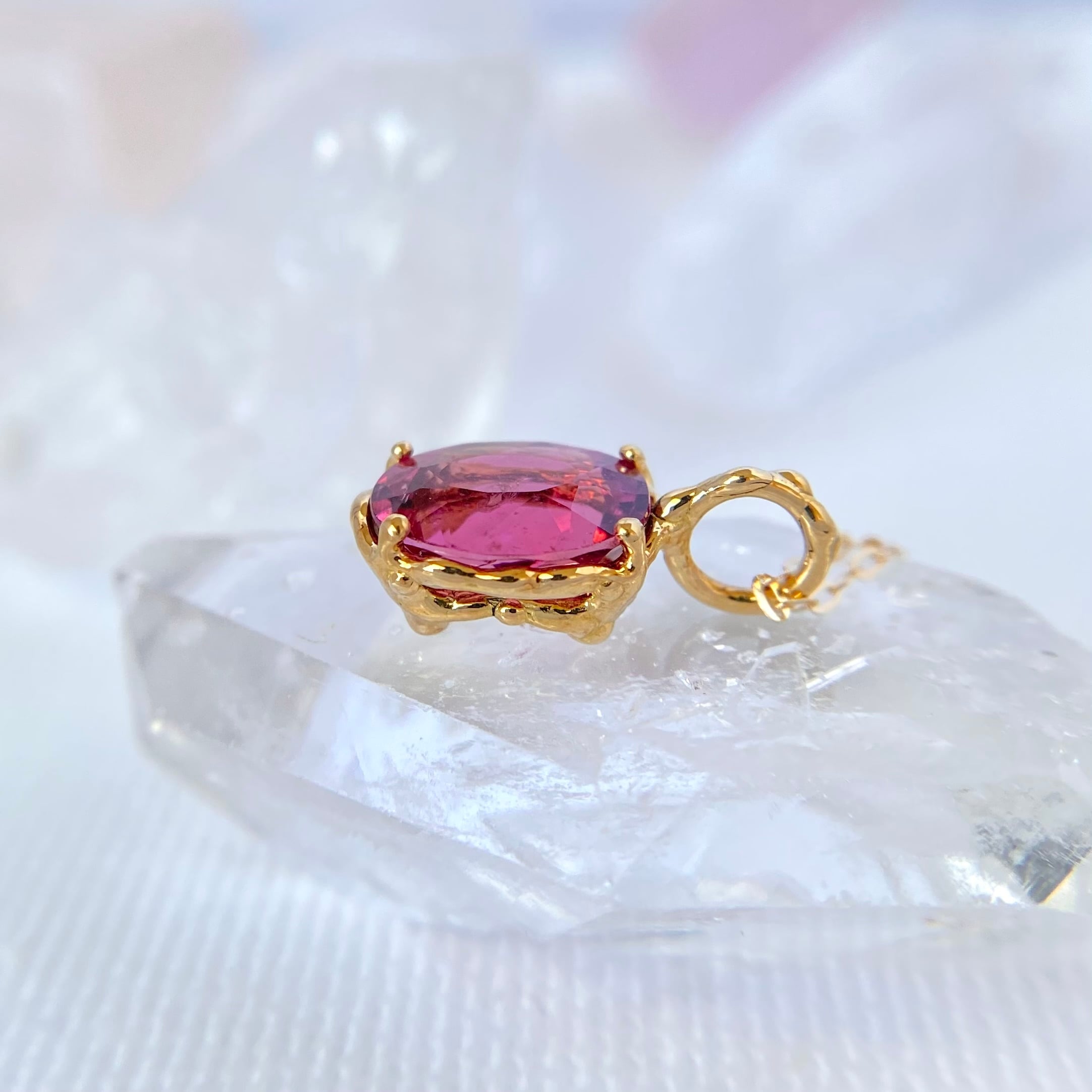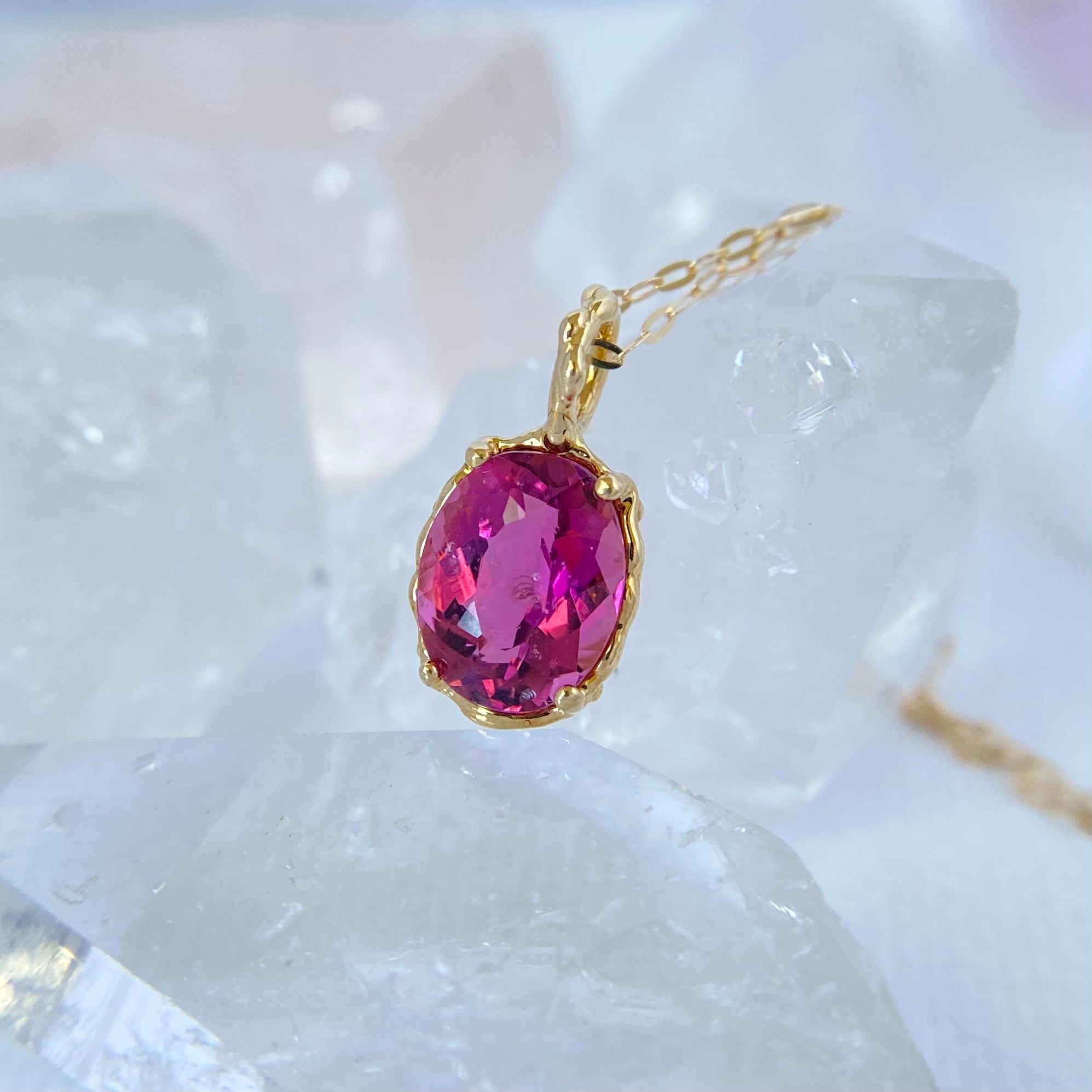 トルマリンは多くの色の種類があります。こちらのトルマリンは透明度が高くピンクカラーにレッドが見えて色合いが美しいです。