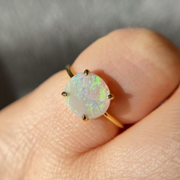 天然オパールリング/オーストラリアLightning Ridge産原石から磨いた1点ものジュエリー