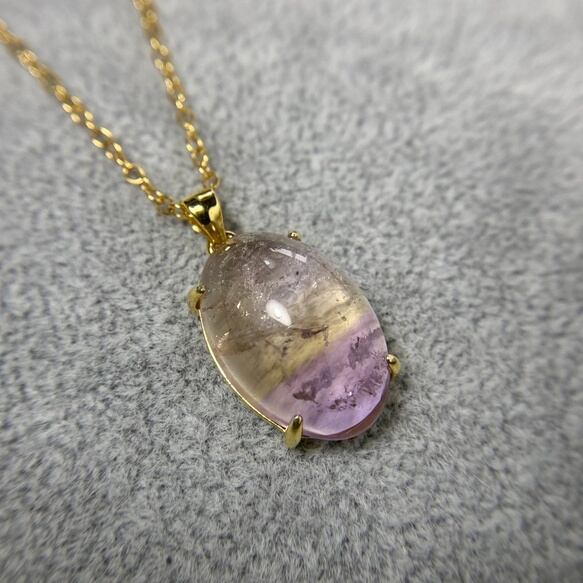 薄紫とシトリンイエロー、透明なクォーツが可愛い天然アメトリン14kgfネックレス☆