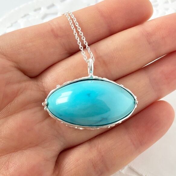 空色がとても綺麗でとても大きい天然トルコ石(ターコイズ)純銀ロングネックレス。