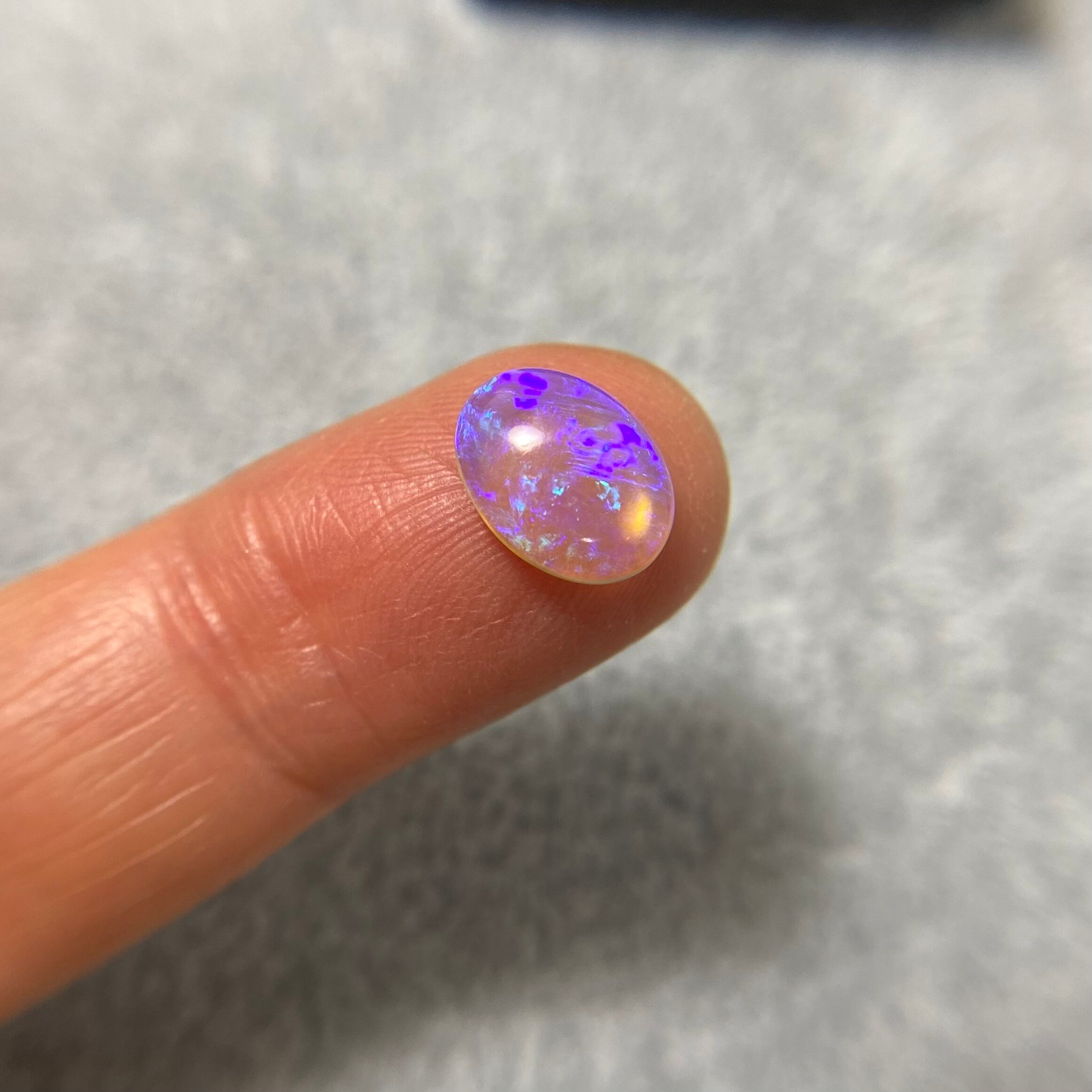 透明感のあるオパールに浮かび上がる、青紫色の遊色がきらめいてとても美しく魅力的です。