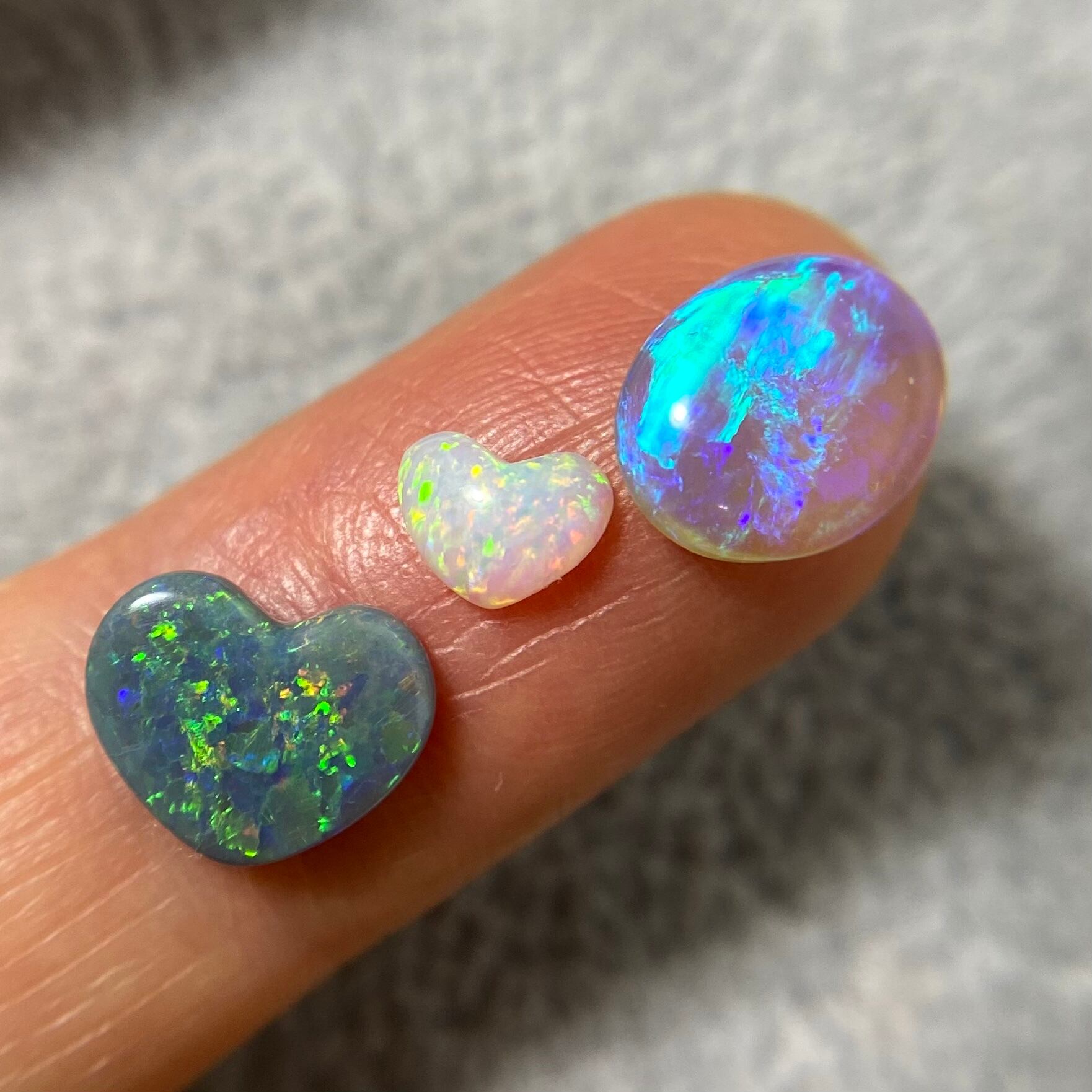 オパールは見る角度によって遊色の色が変わり、楽しい石です。是非太陽光で色々な方向からみて天然オパールの遊色の変化をお楽しみ下さい。