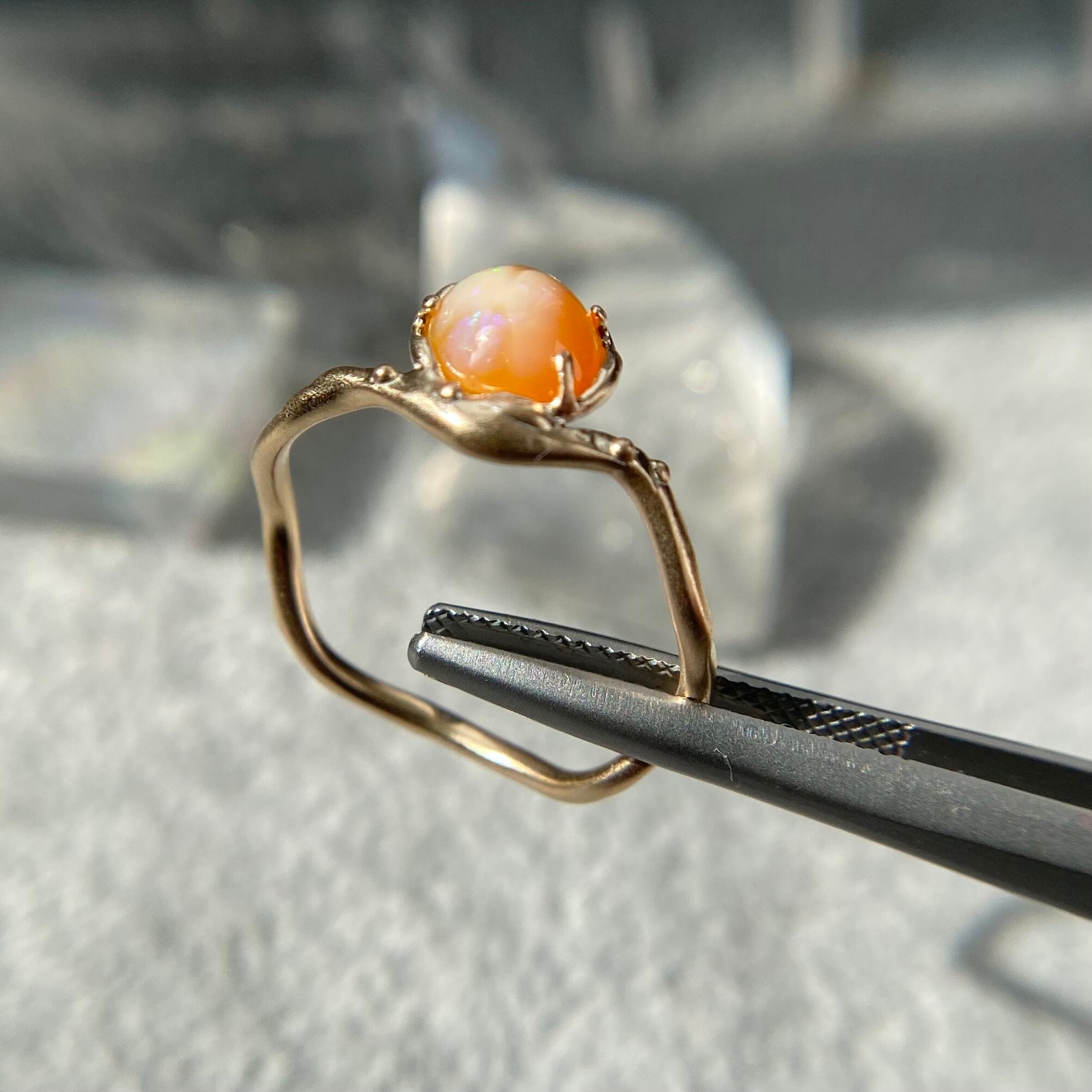 オパール 天然オパール ソリッド 天然石ジュエリー 宝石研磨 ハンドメイドジュエリー 1点もの オパールリング ハンドメイド作品 ハンドメイド作家 ハンドメイドアクセサリー ジュエリー工房 ジュエリーショップ 新作 K10 10金 ゴールド 石から磨くジュエリー作家