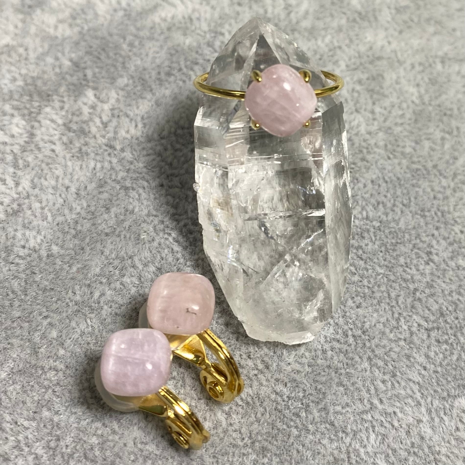 ほんのり紫がかった上品なライラックピンクが可愛いクンツァイトのイヤリング!