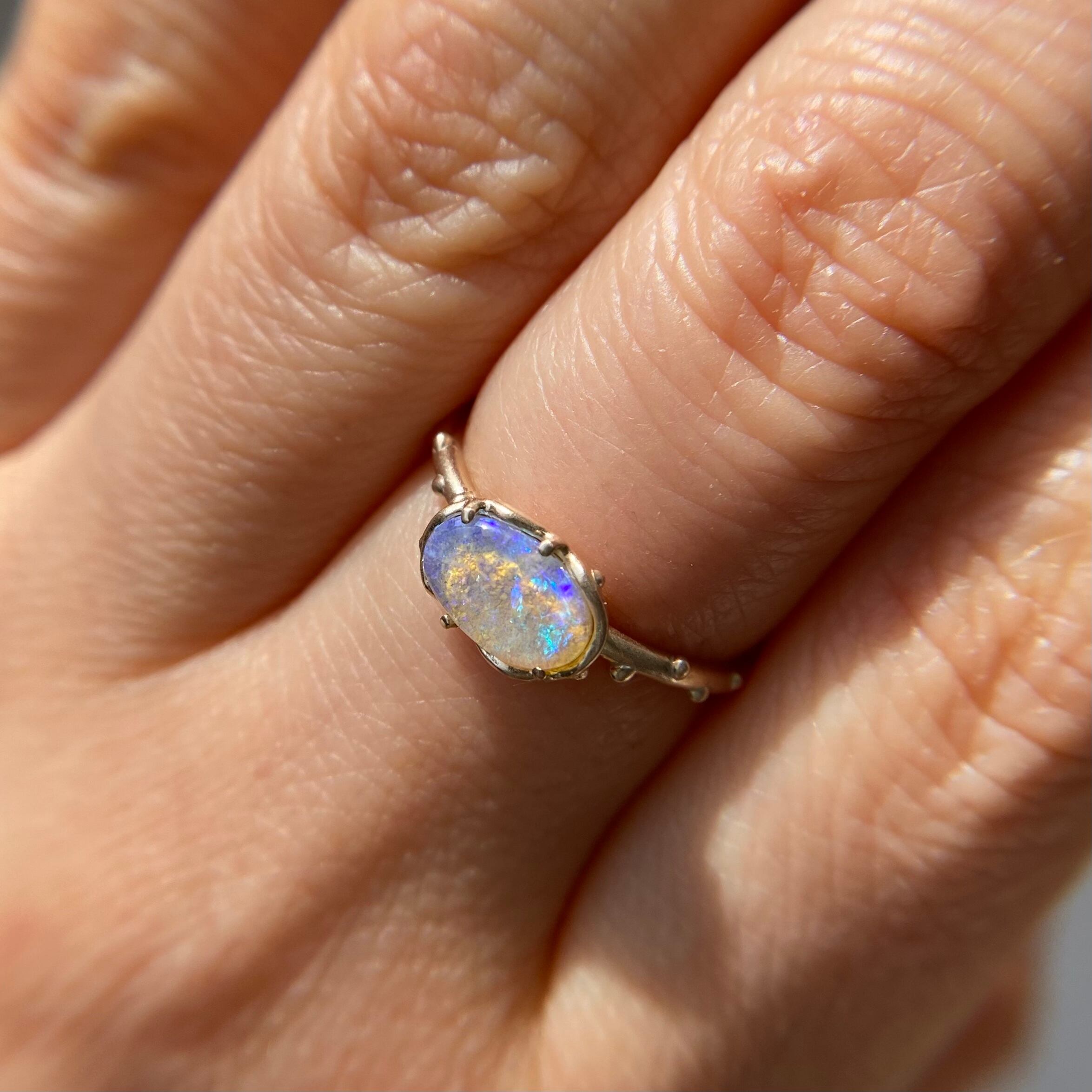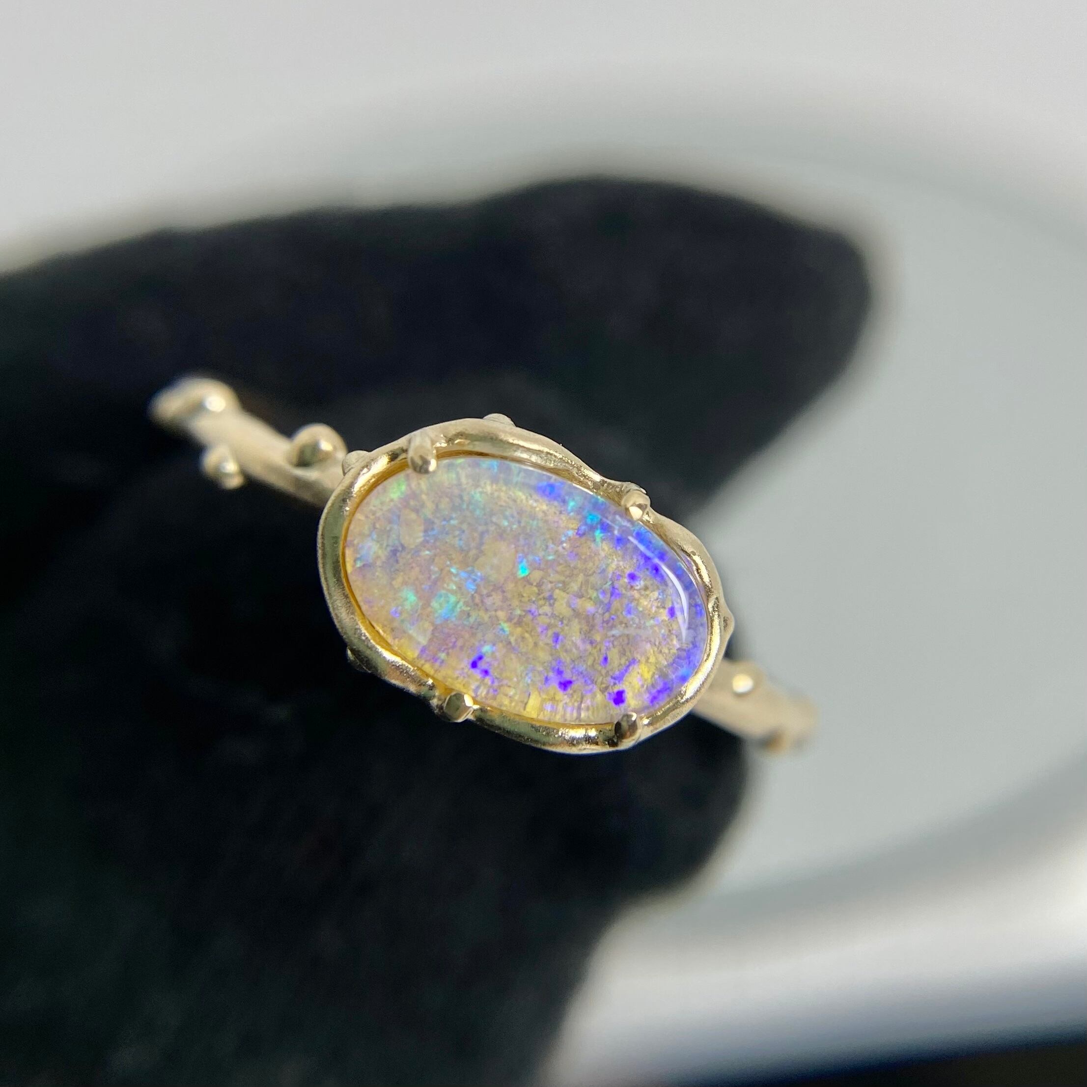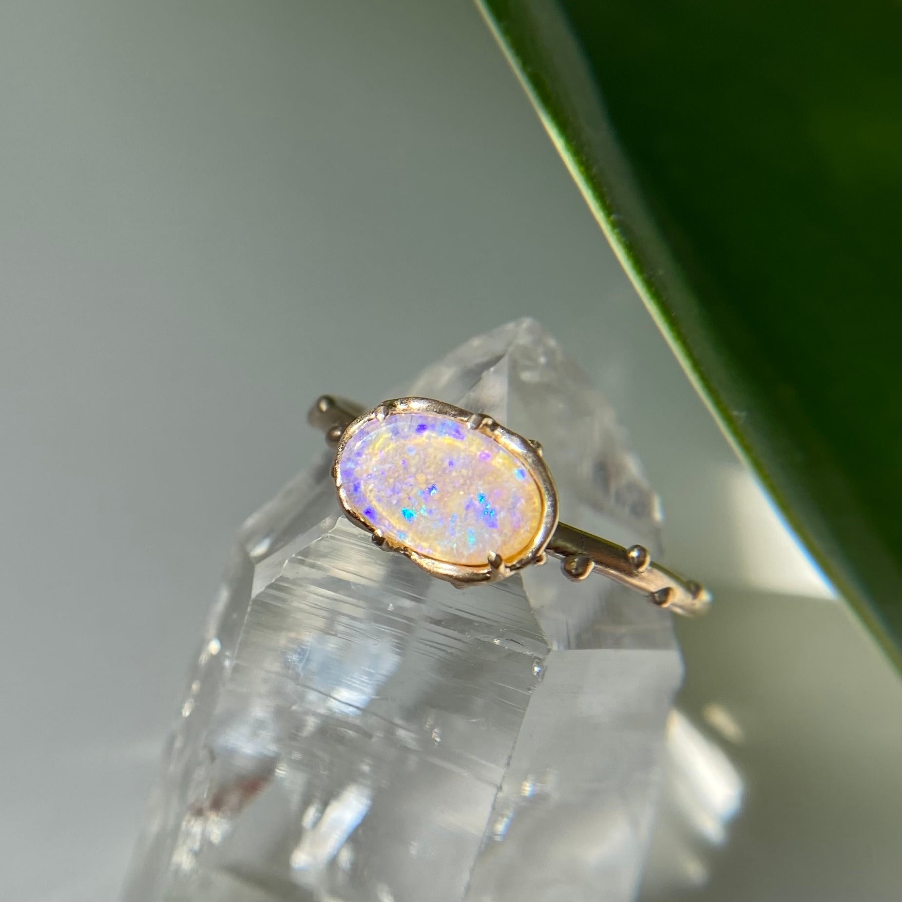 K10 オパールリング #15 Lightning Ridge産原石から磨いた1点ものジュエリー!