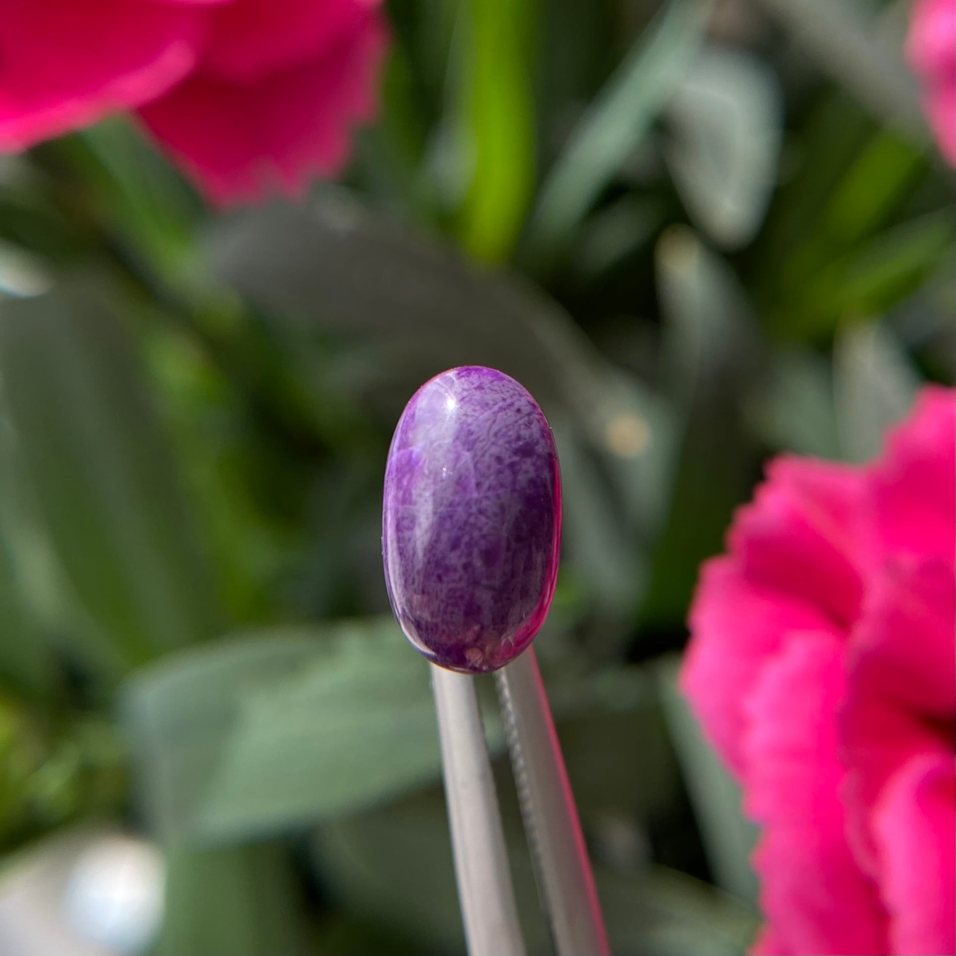 少し濃いめのパープルカラーとグレーの模様が美しく、神秘的なスギライトです。