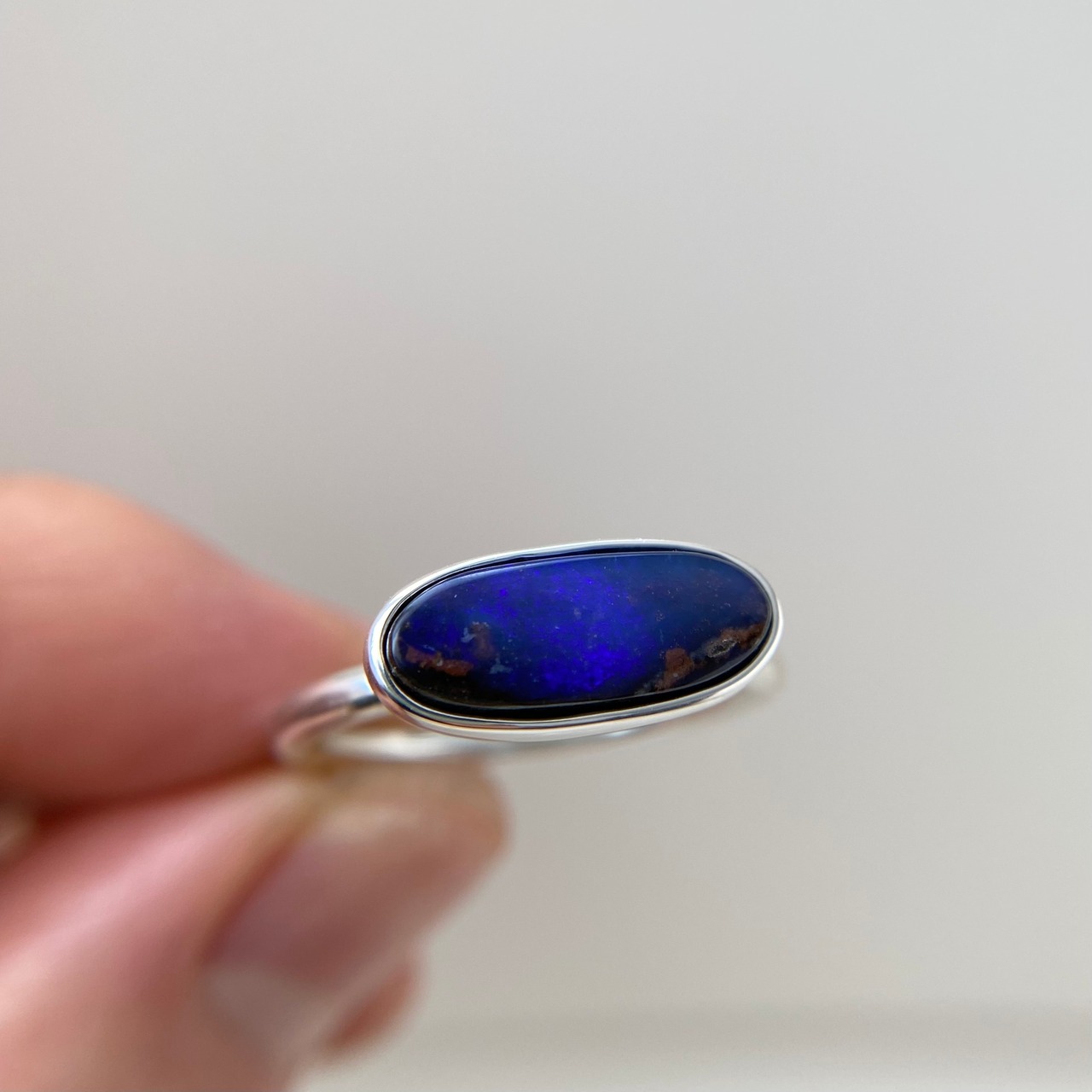 【SOLD】天然ボルダーオパールシルバーリング/サイズオーダー/Yowah産原石から磨いた1点もの!