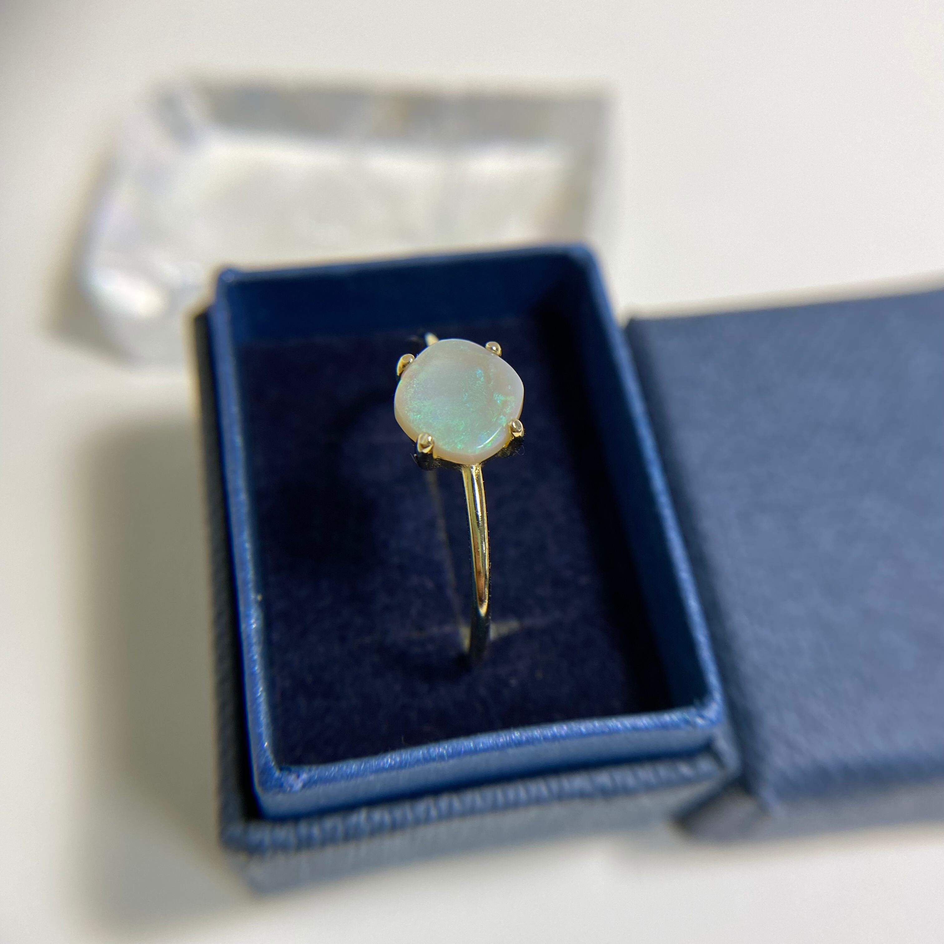 天然オパールリング オーストラリア産原石から磨いた1点物ジュエリー!