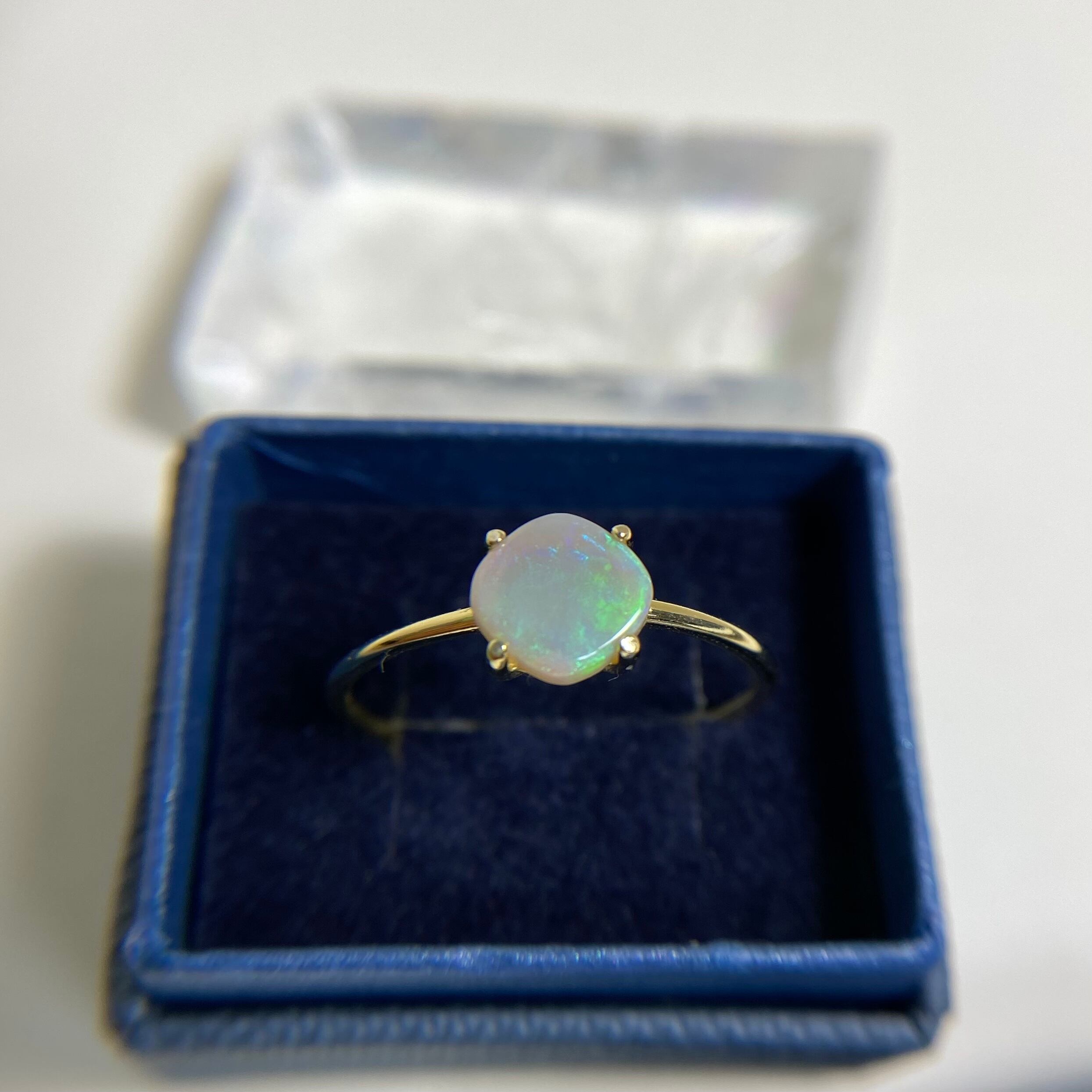 方向によって遊色が見えたり見えなかったりするので、リングを少し動かして 天然オパールの遊色の変化をお楽しみ下さい。