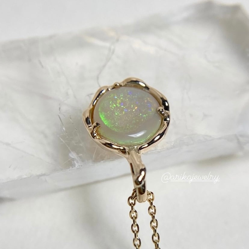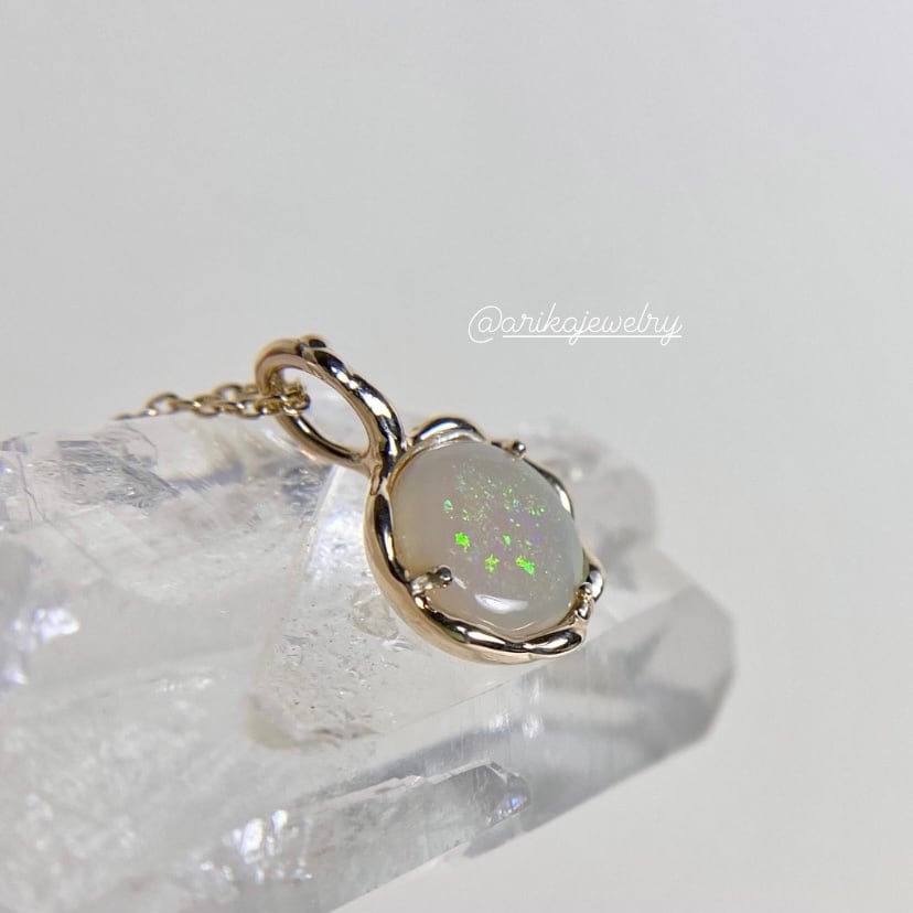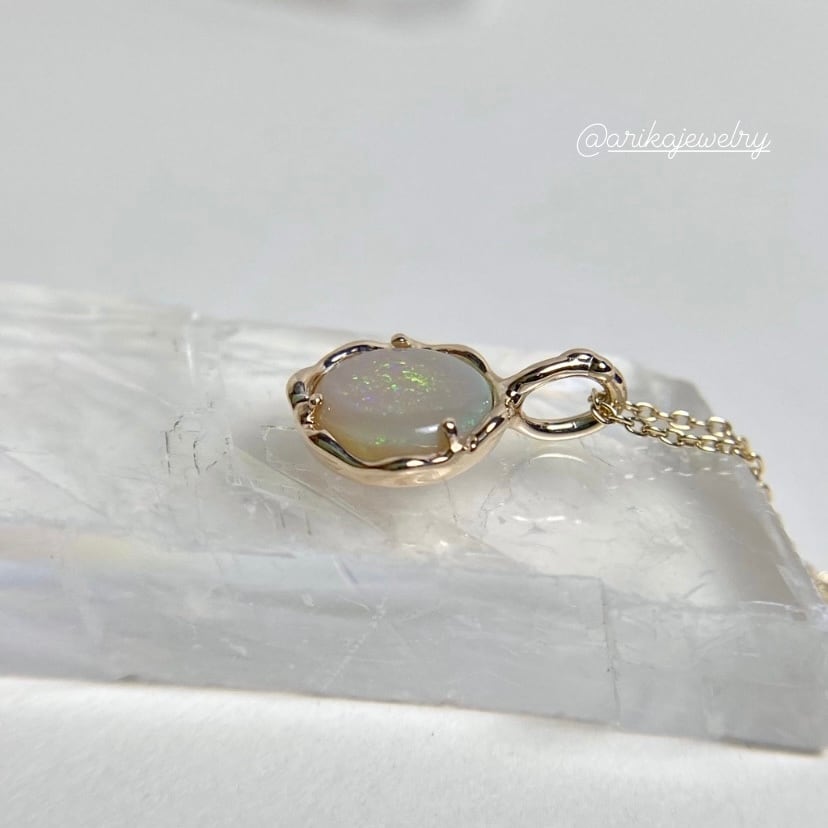 K10☆天然オパールネックレス☆オーストラリア産原石から磨いた1点ものジュエリー!