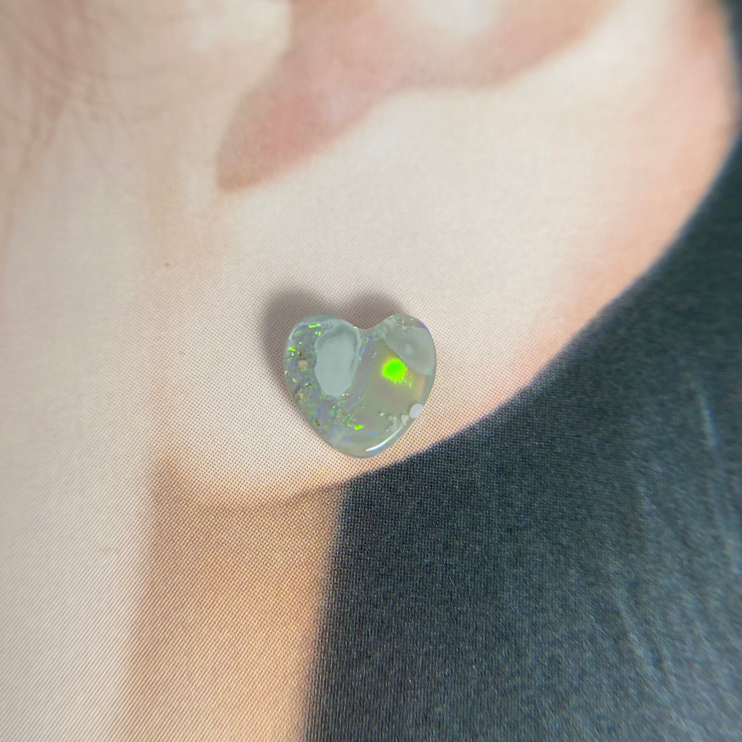 天然オパール14kgfハートピアス☆オーストラリア・Lightning Ridge産原石から磨いた1点もの