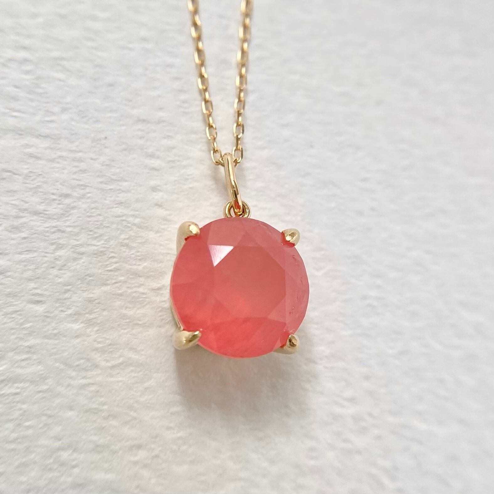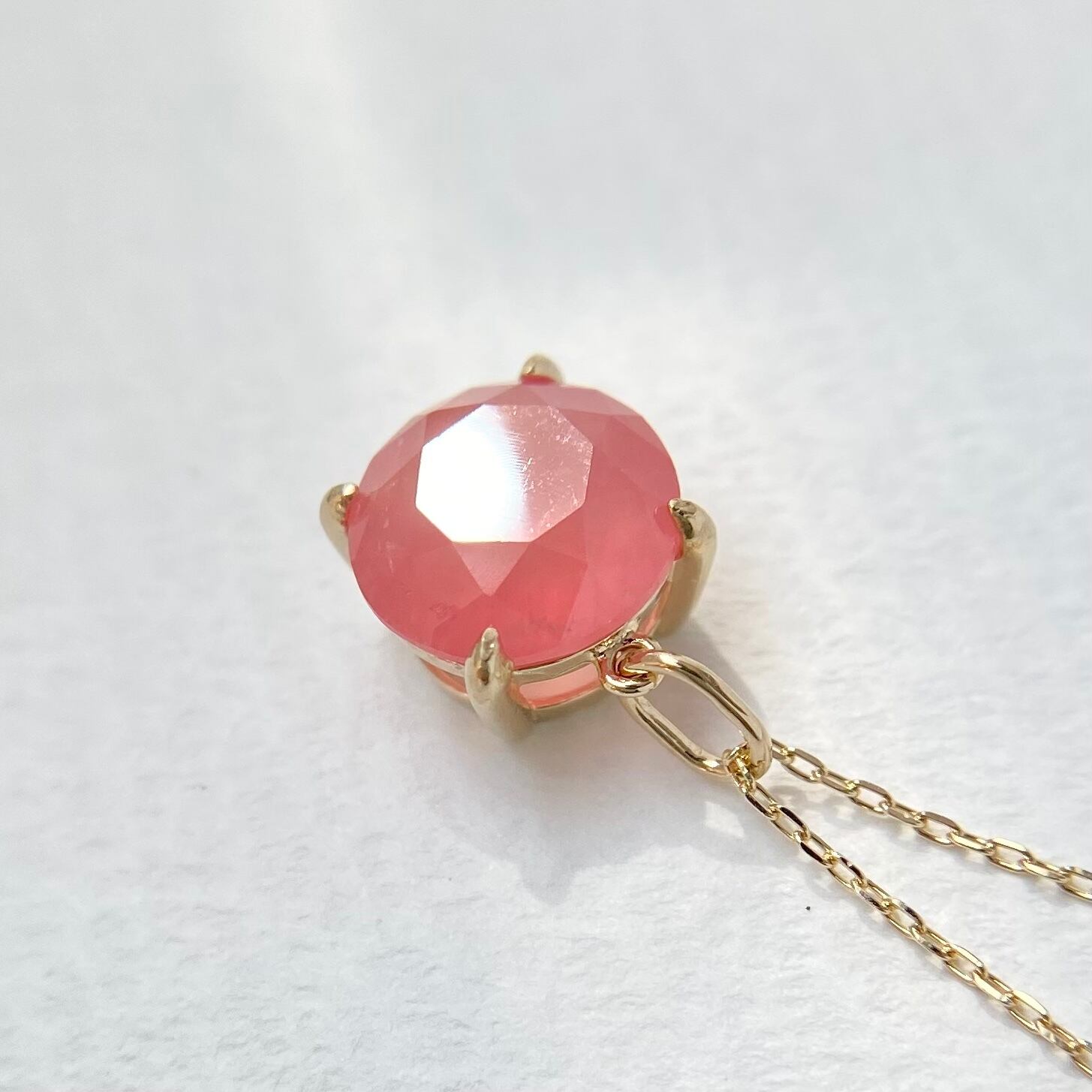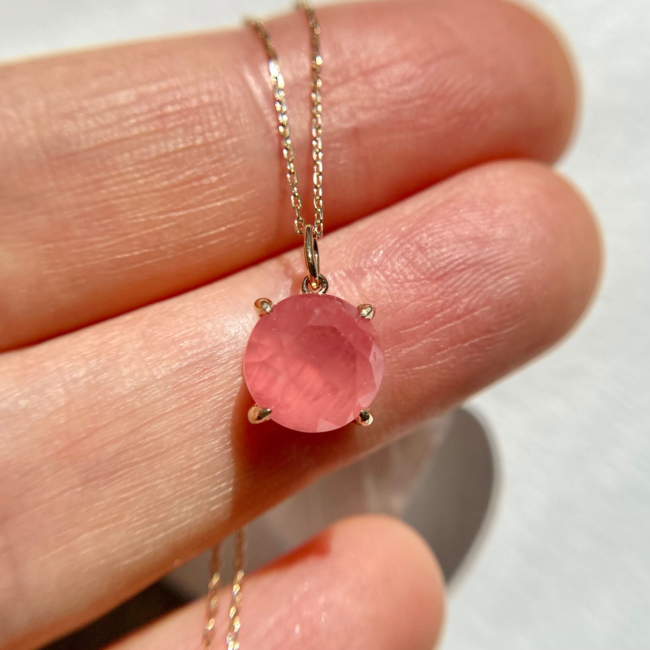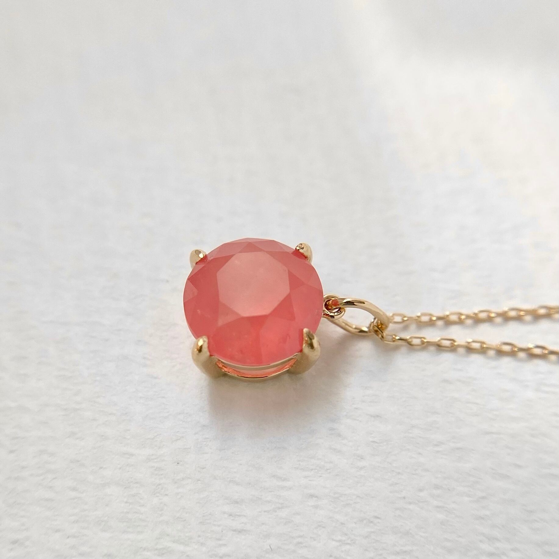 北海道産の天然ロードクロサイト原石をファセットカットに研磨して、シンプルなネックレスを作りました。