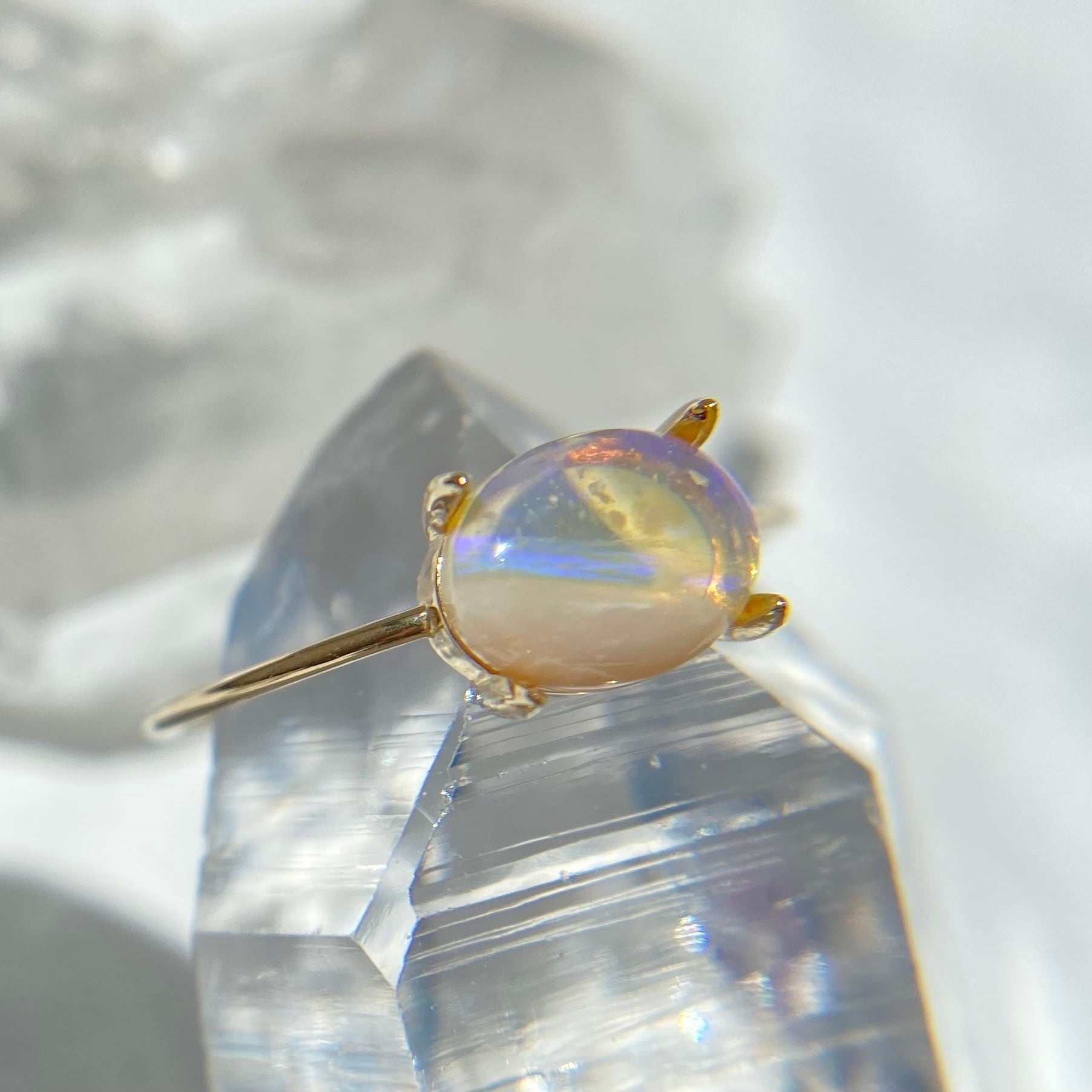 K10 天然オパールリング (選べるサイズ) 原石から磨いた1点ものジュエリー!