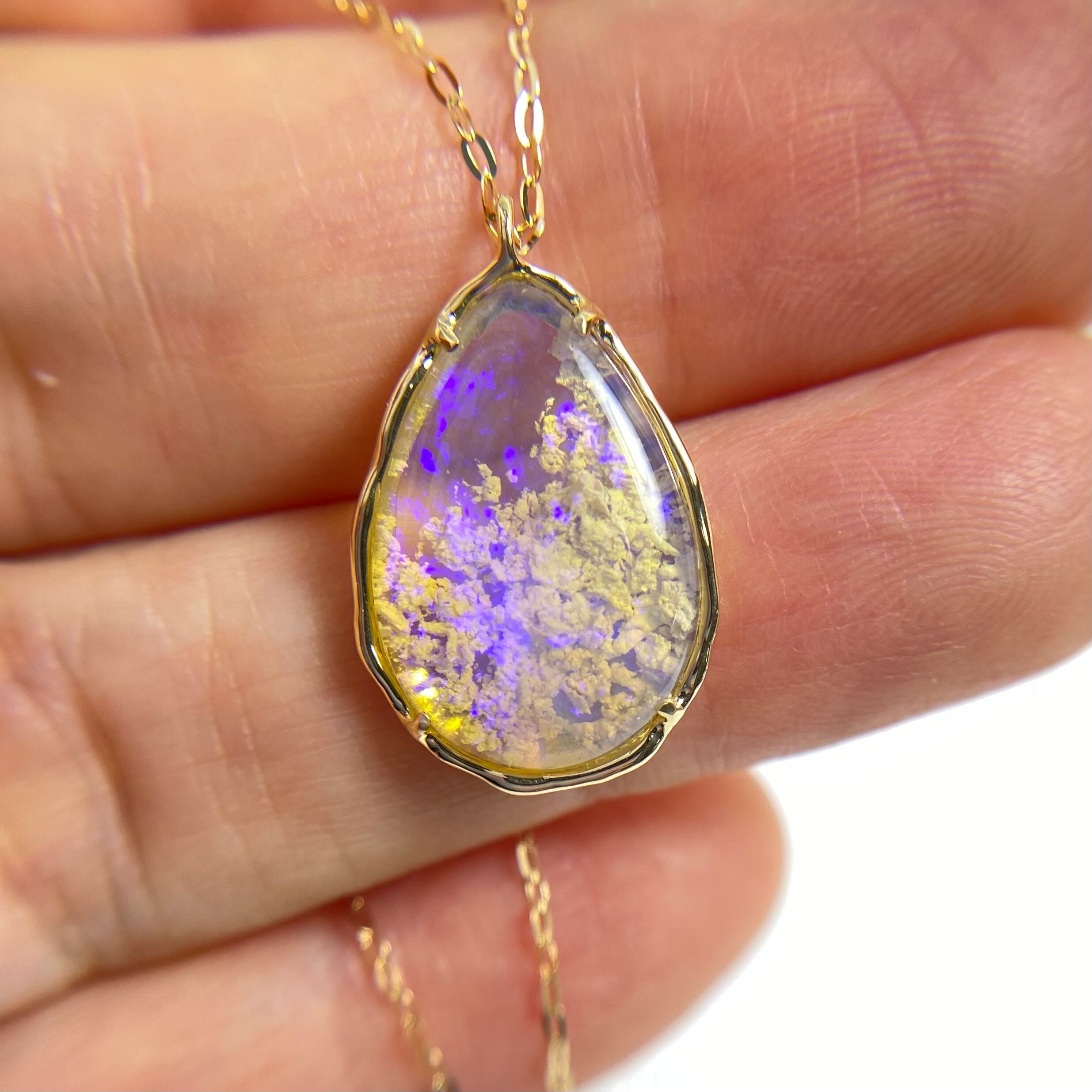 K18☆天然オパールネックレス☆ オーストラリアLightning Ridge産原石から磨いた1点もの!