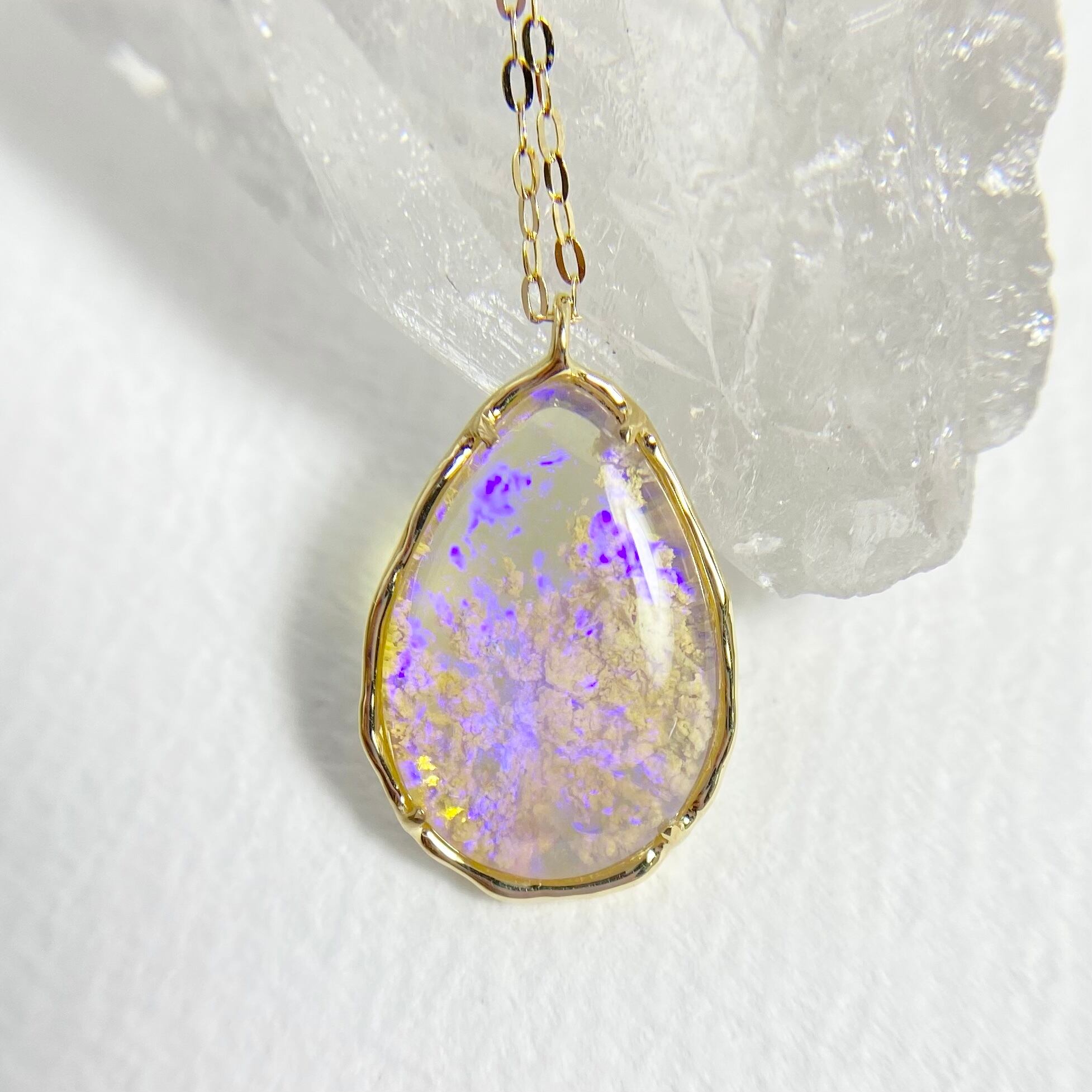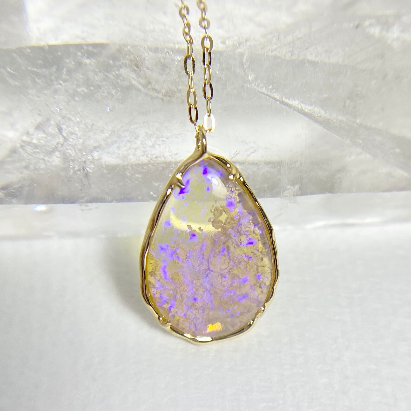 すみれ色の遊色がキレイな天然オパールK18ネックレス☆