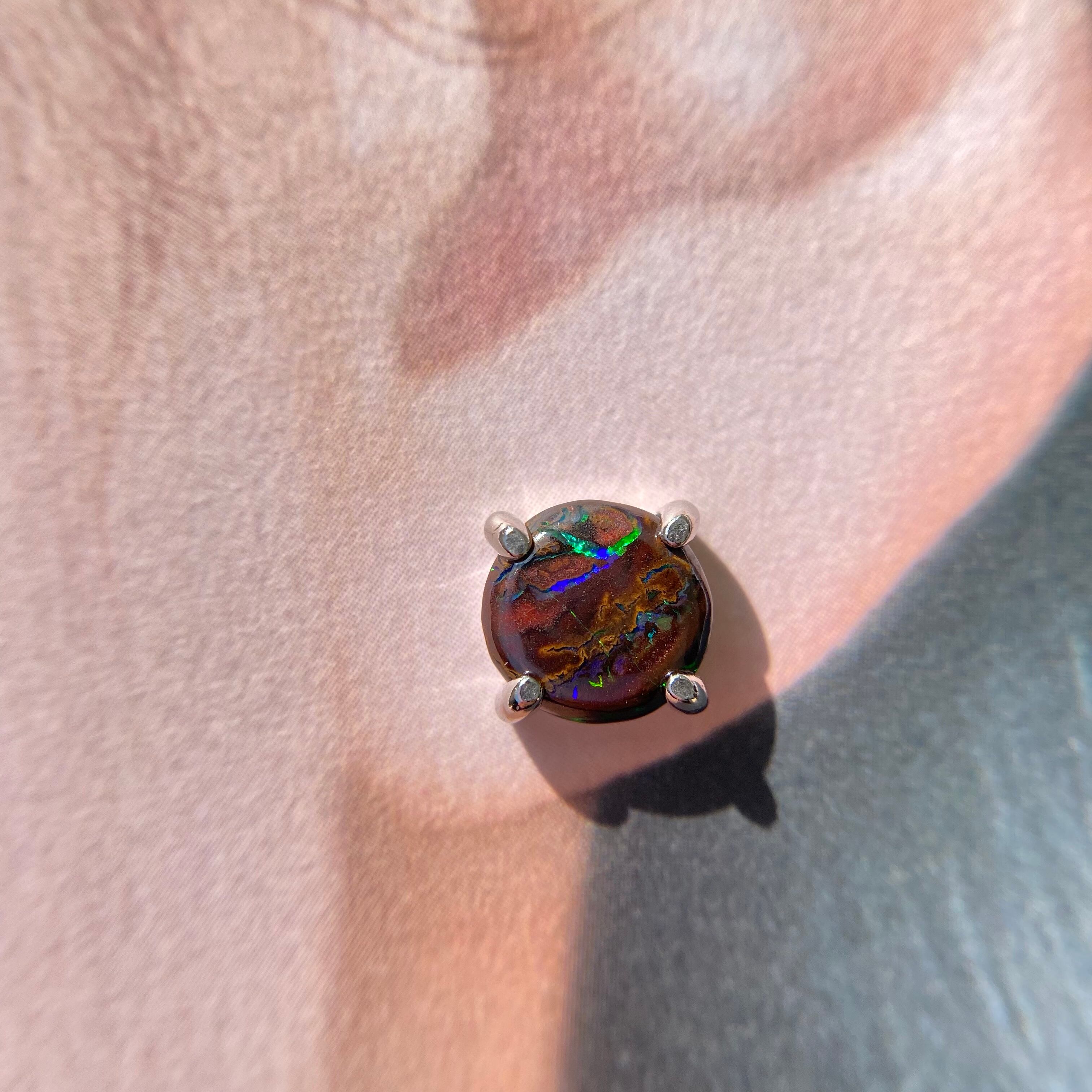 こちらのボルダーオパールは母岩の模様の中に遊色がキラキラきらめいて綺麗です。