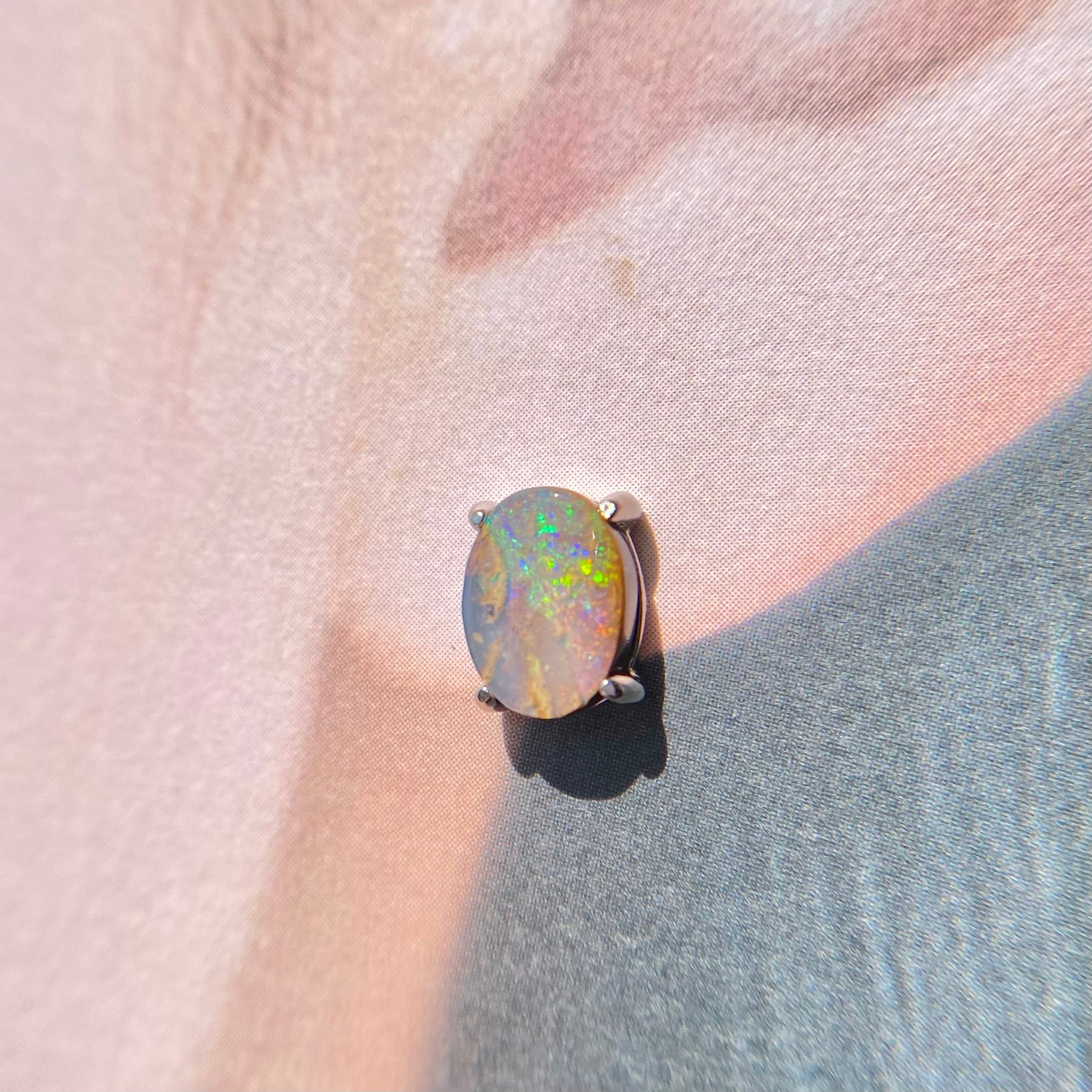 オパールは太陽光で遊色がとても綺麗に見えます。天然オパールの遊色の変化をお楽しみ下さい。