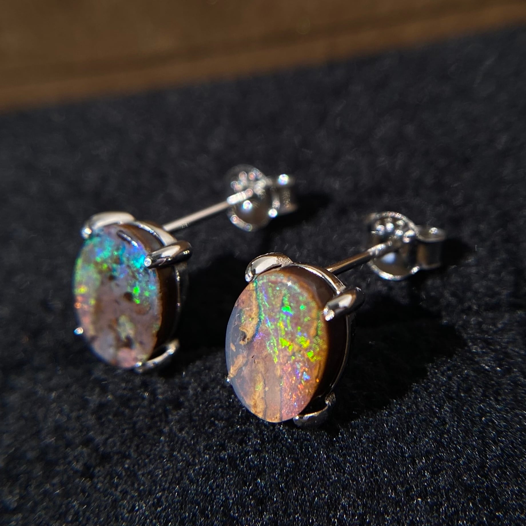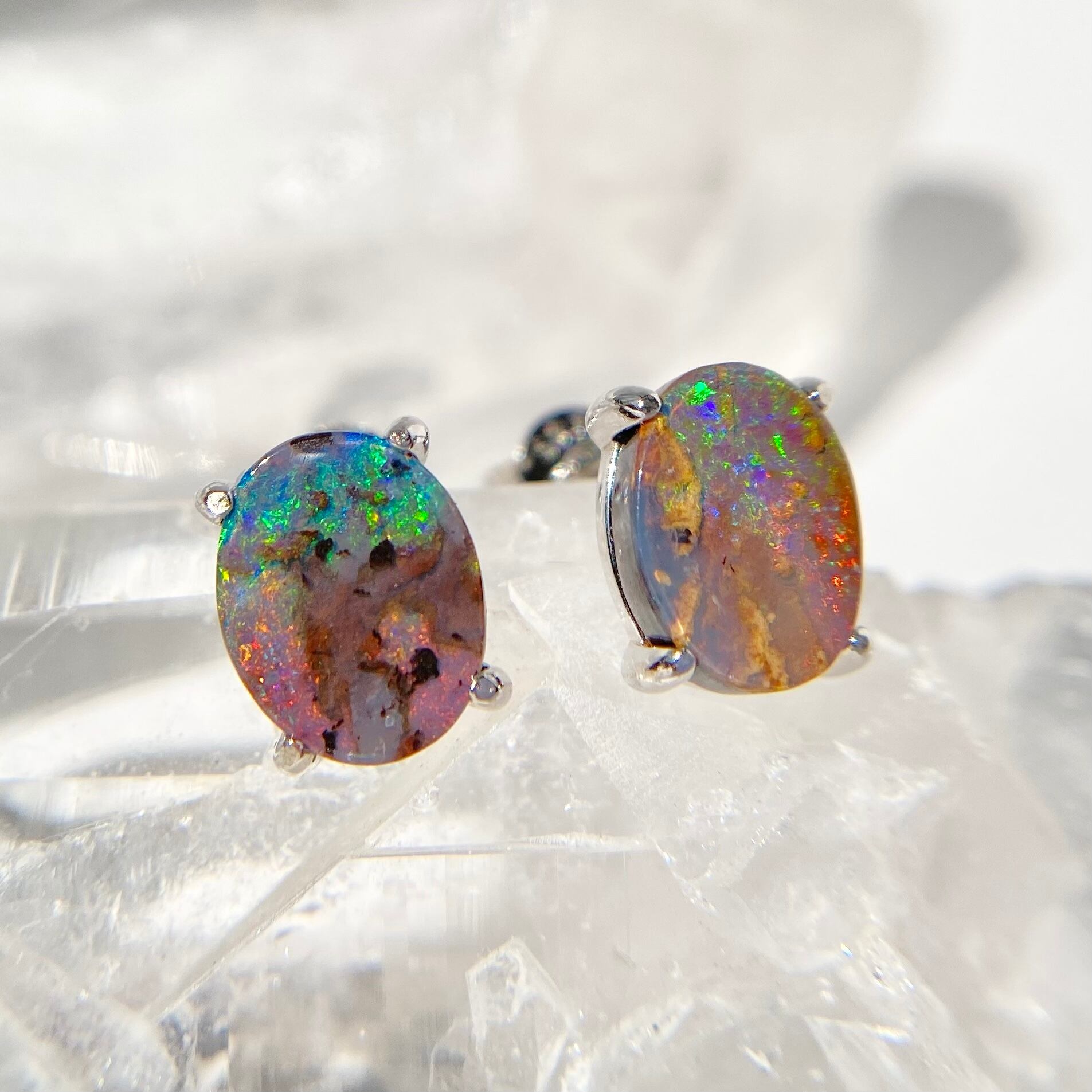遊色が綺麗な天然ボルダーオパール両耳ピアス☆