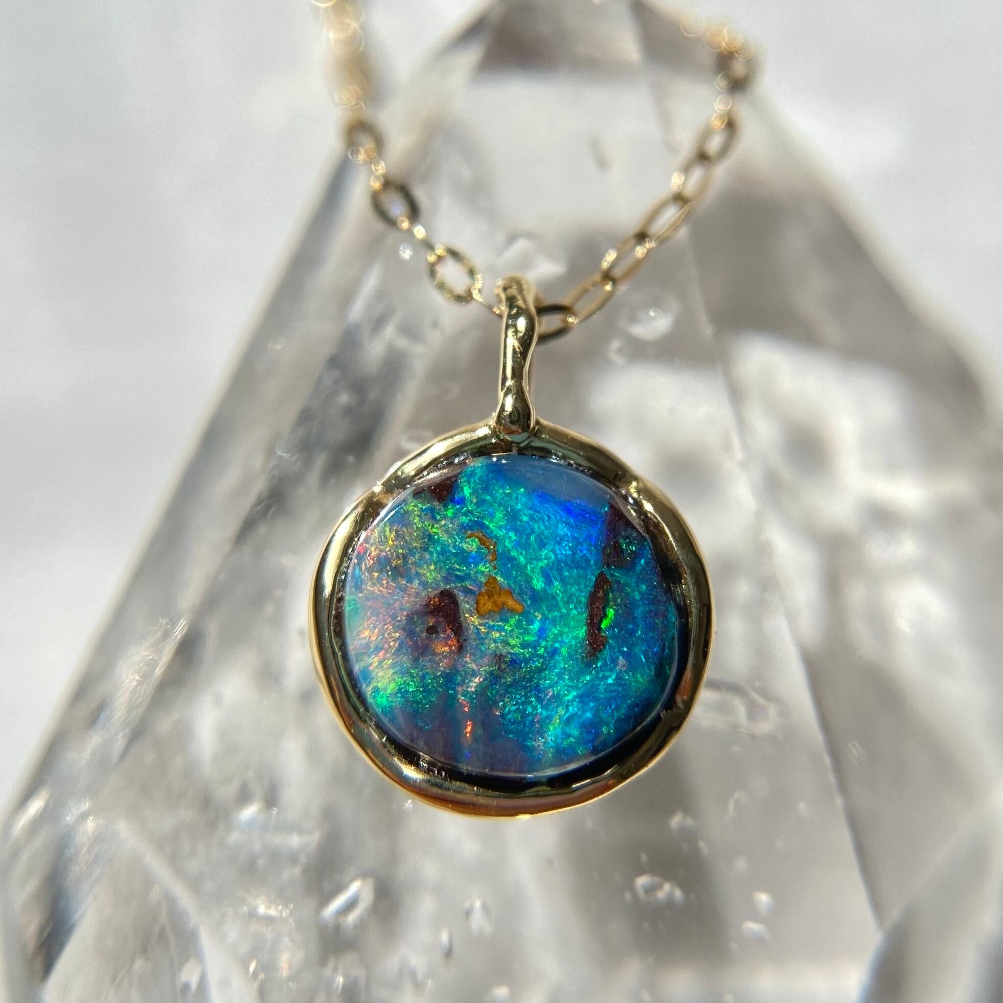 K18☆天然ボルダーオパールネックレス☆ オーストラリア産原石から磨いた1点もの!