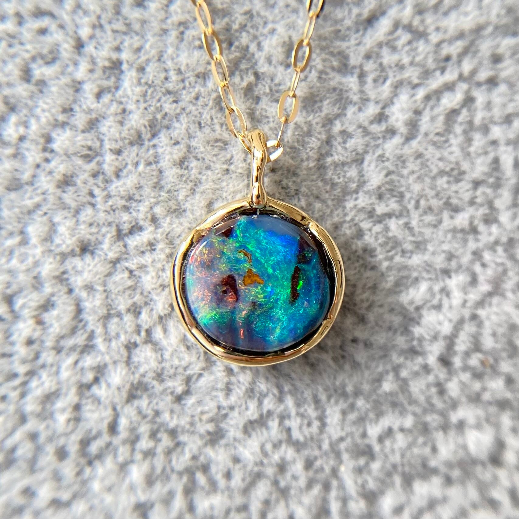 遊色がキレイな天然ボルダーオパールK18ネックレス☆