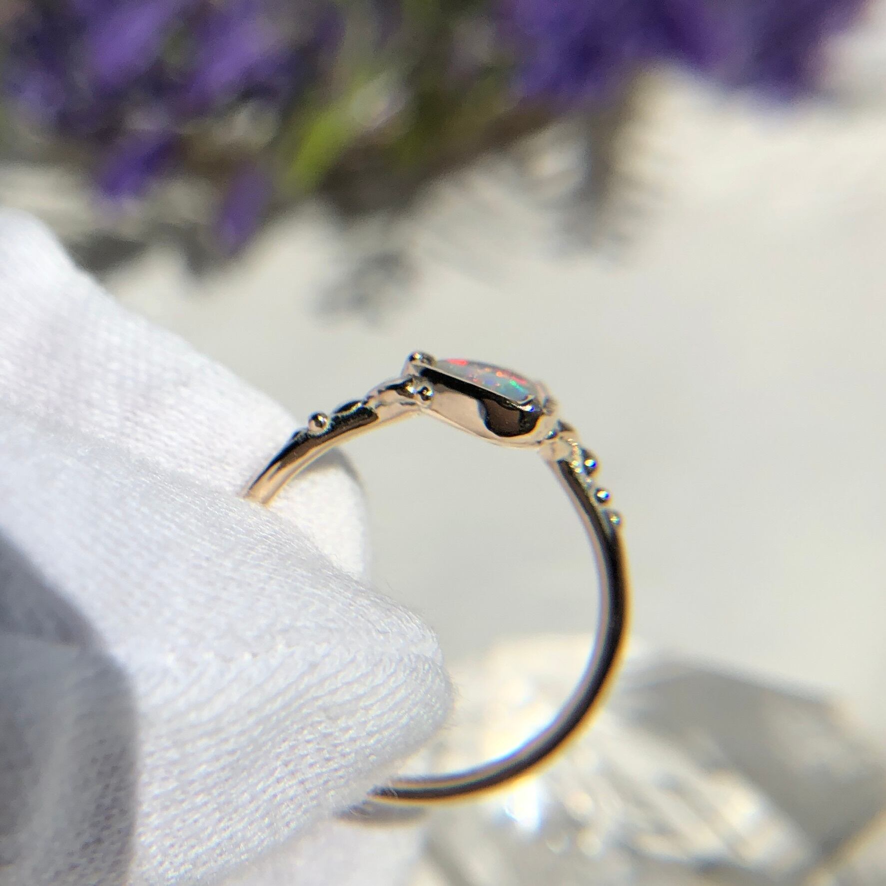 赤、オレンジ、黄色、緑、青色の遊色が綺麗な天然オパールK10リング☆
