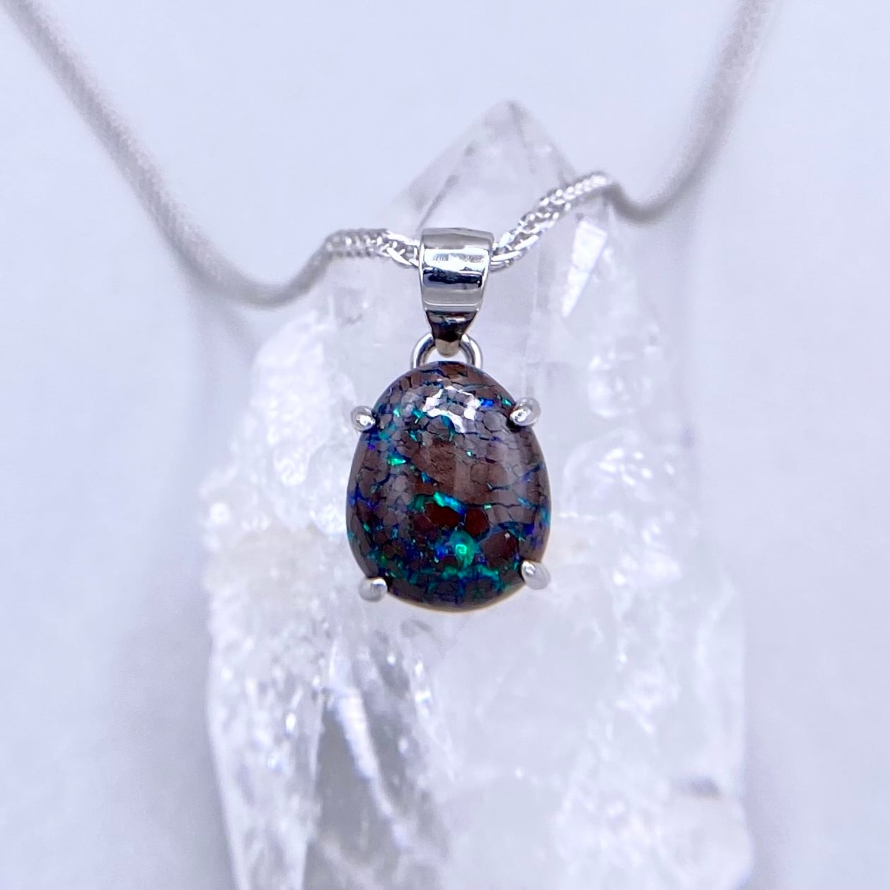 遊色がキレイな天然ボルダーオパールシルバーネックレス。
