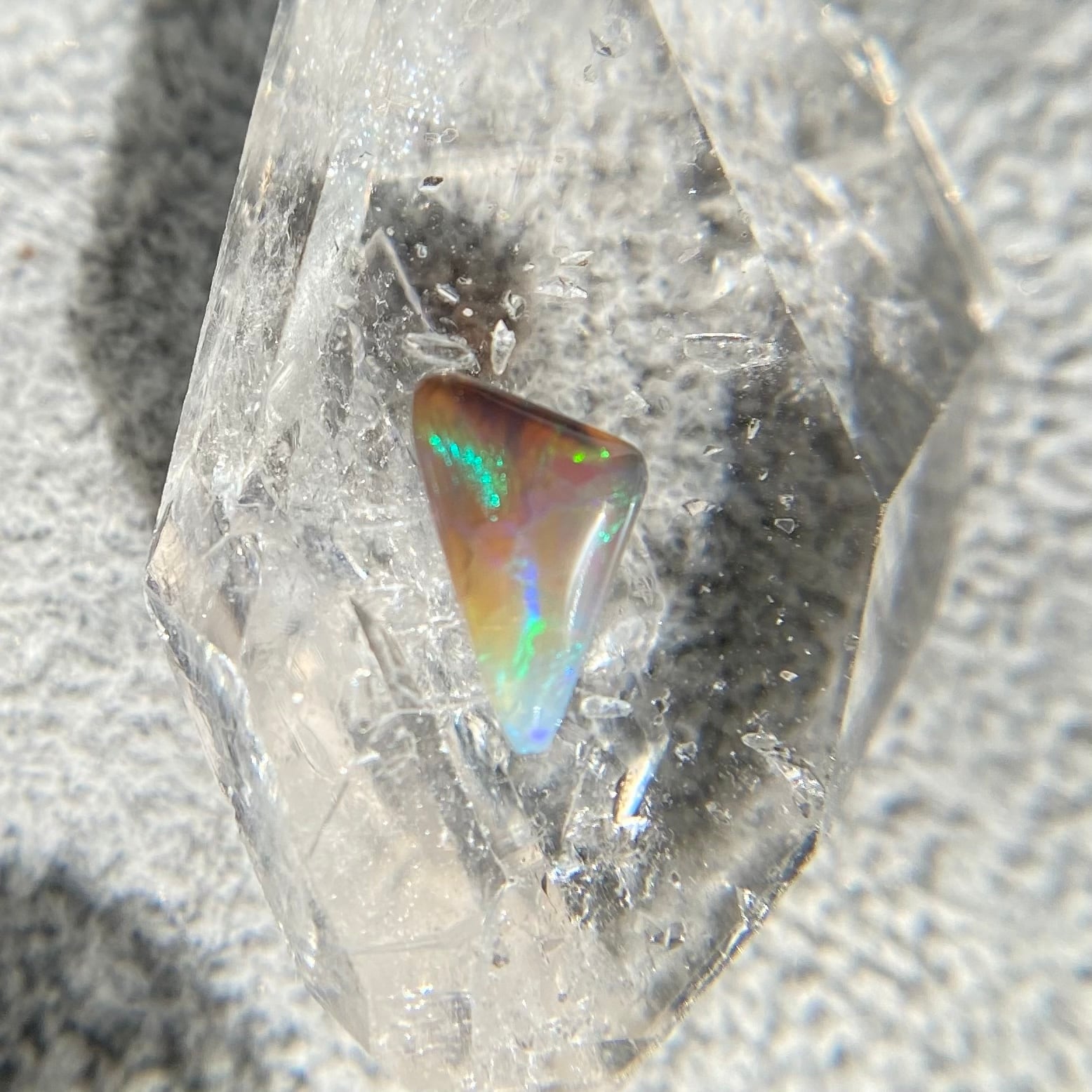 オパールは見る角度によって遊色の色が変わり、楽しい石です。是非太陽光で色々な方向からみて天然オパールの遊色の変化をお楽しみ下さい。