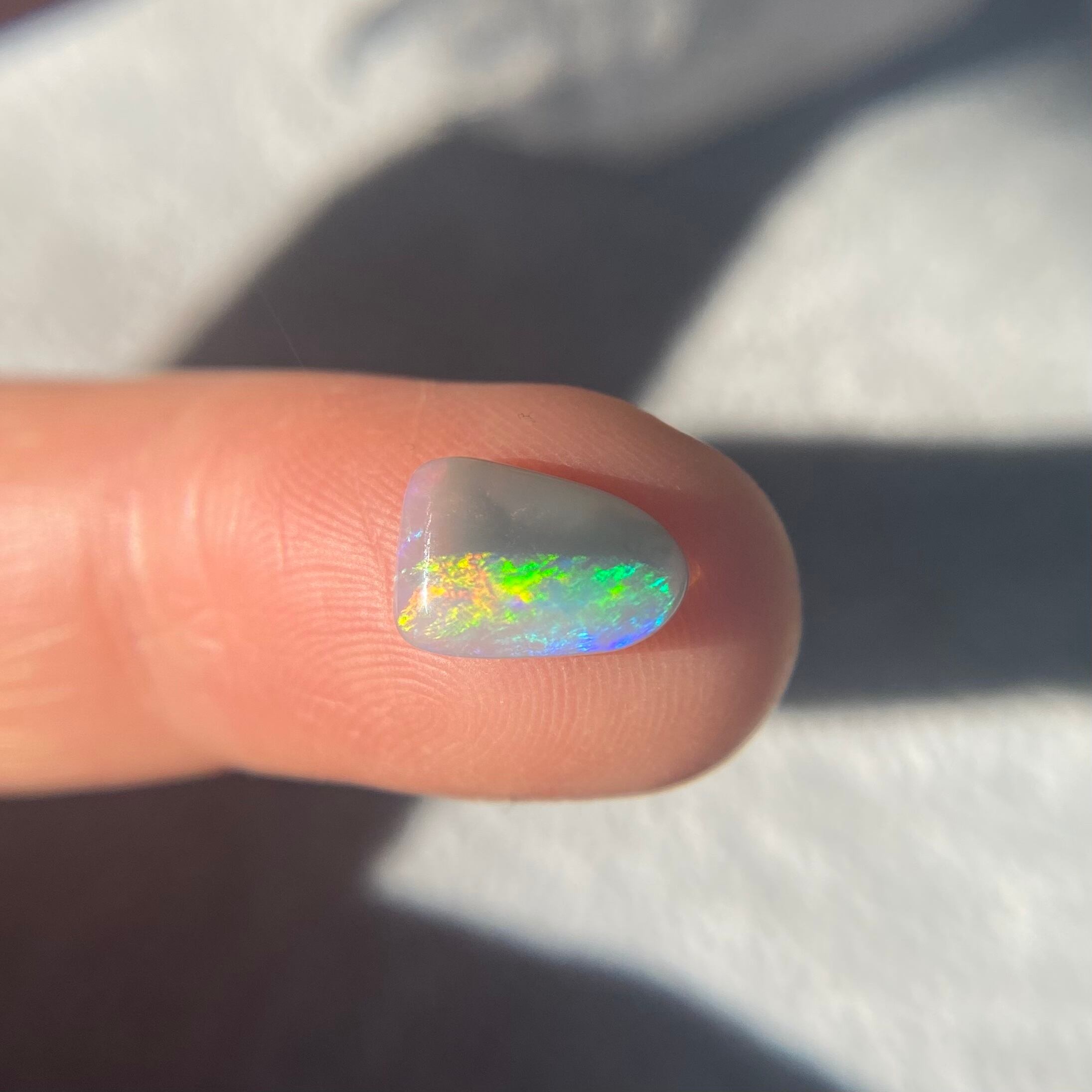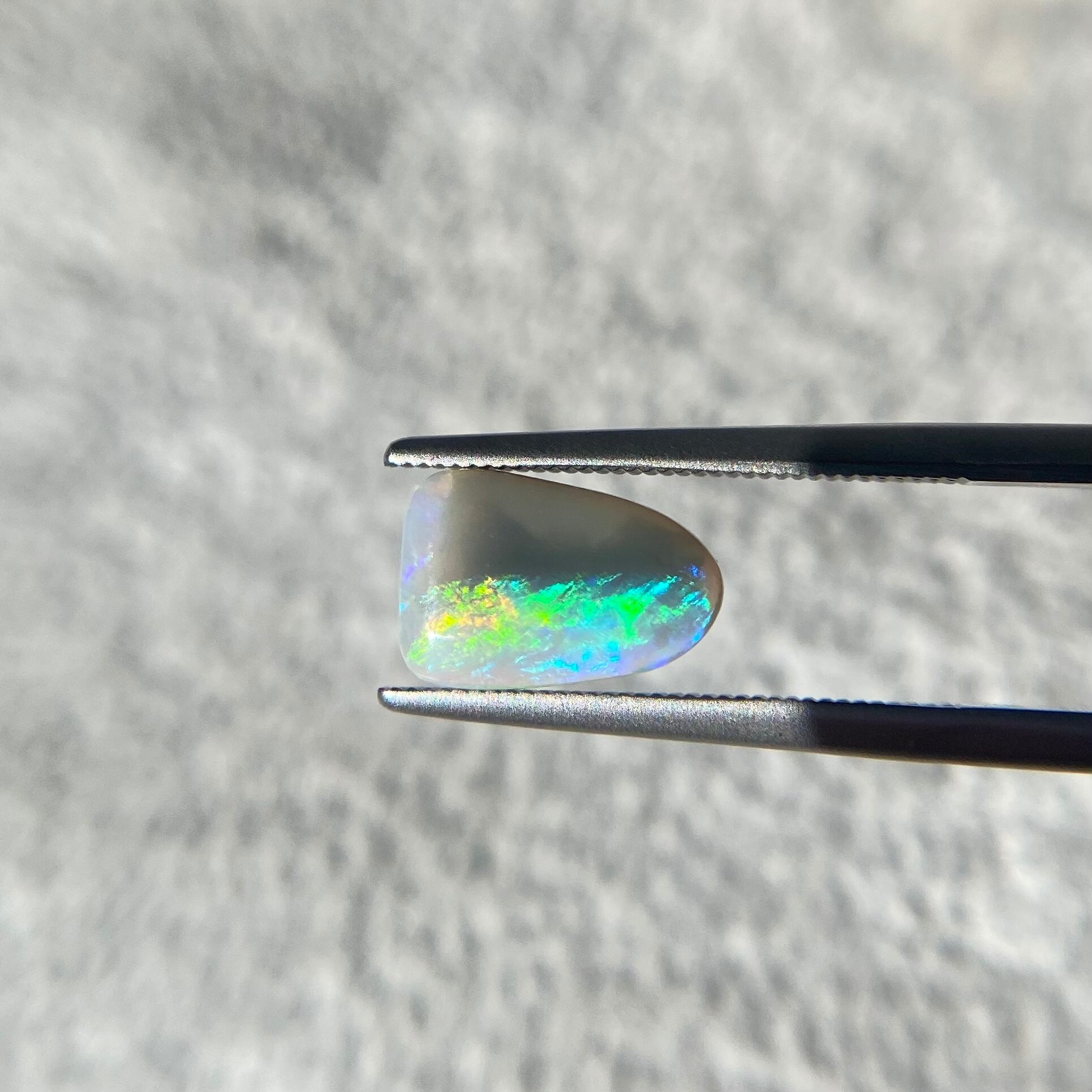 オパールは見る角度によって遊色の色が変わり、楽しい石です。是非太陽光で色々な方向からみて天然オパールの遊色の変化をお楽しみ下さい。