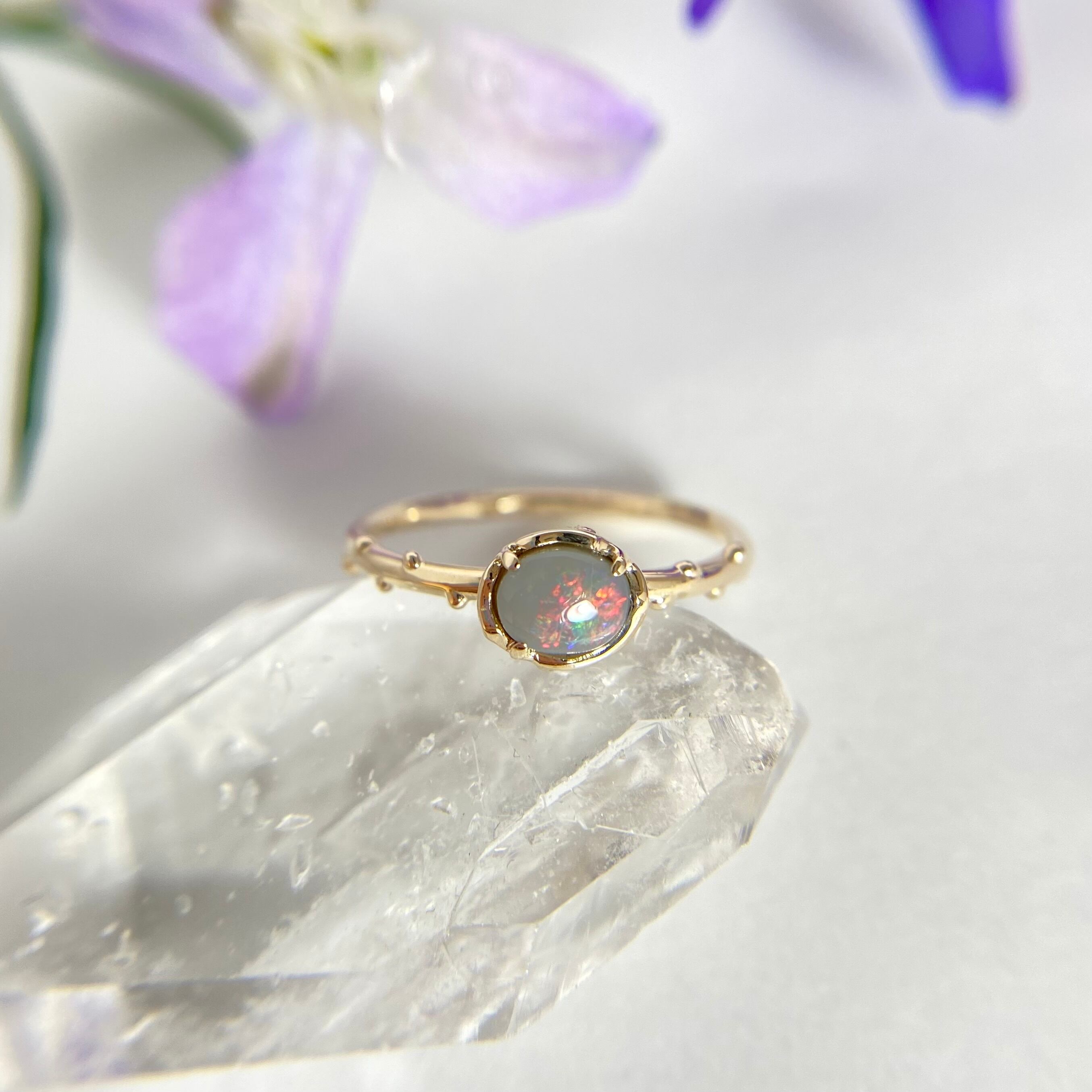 K10天然ブラックオパールリング #11 ライトニングリッジ産原石から磨いた1点もの!