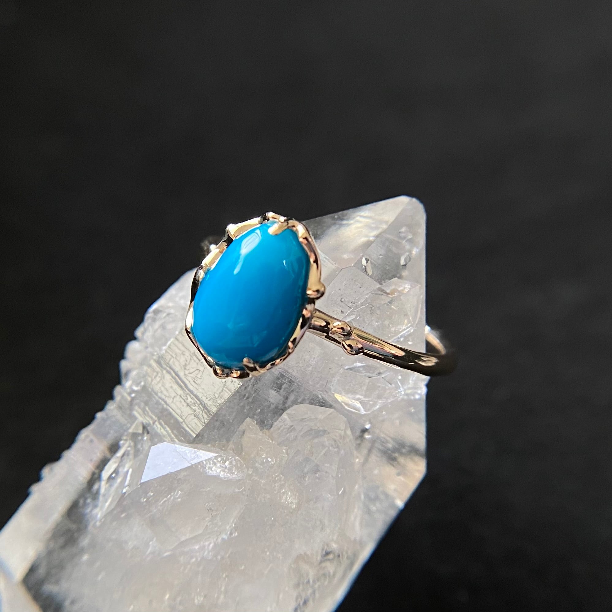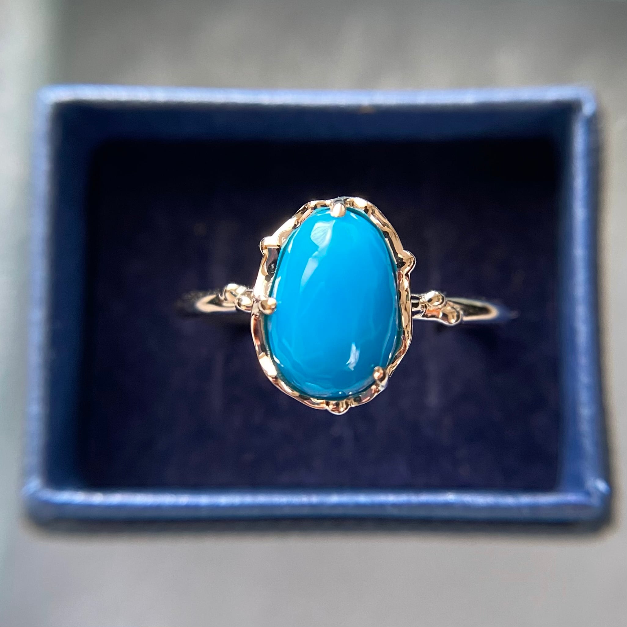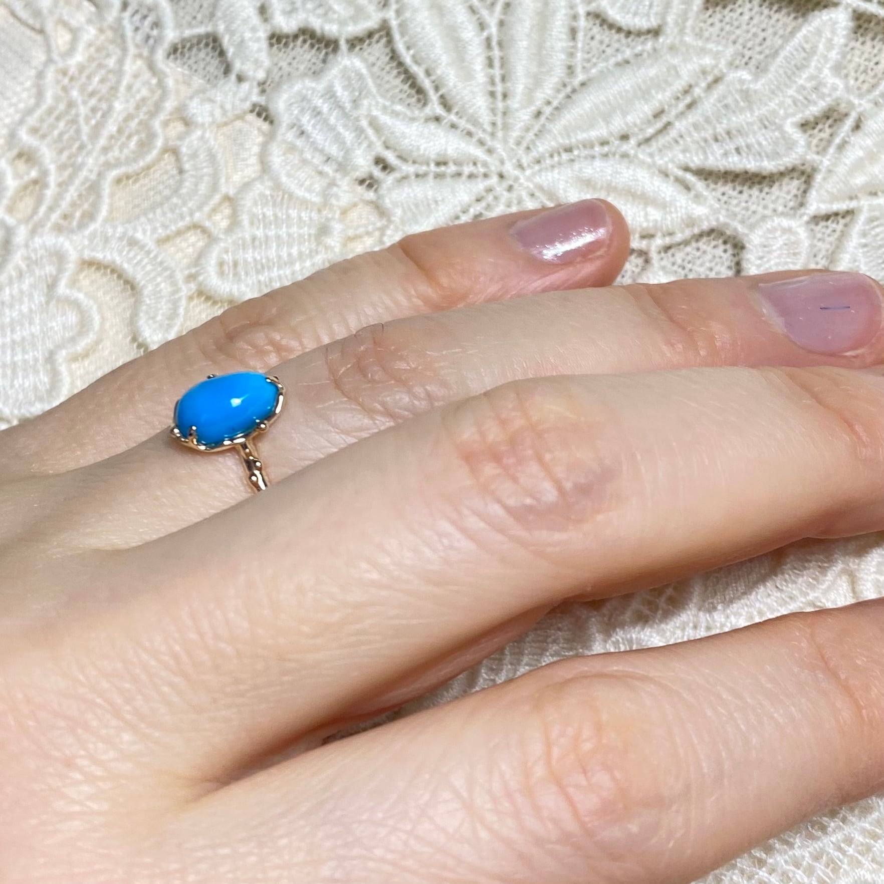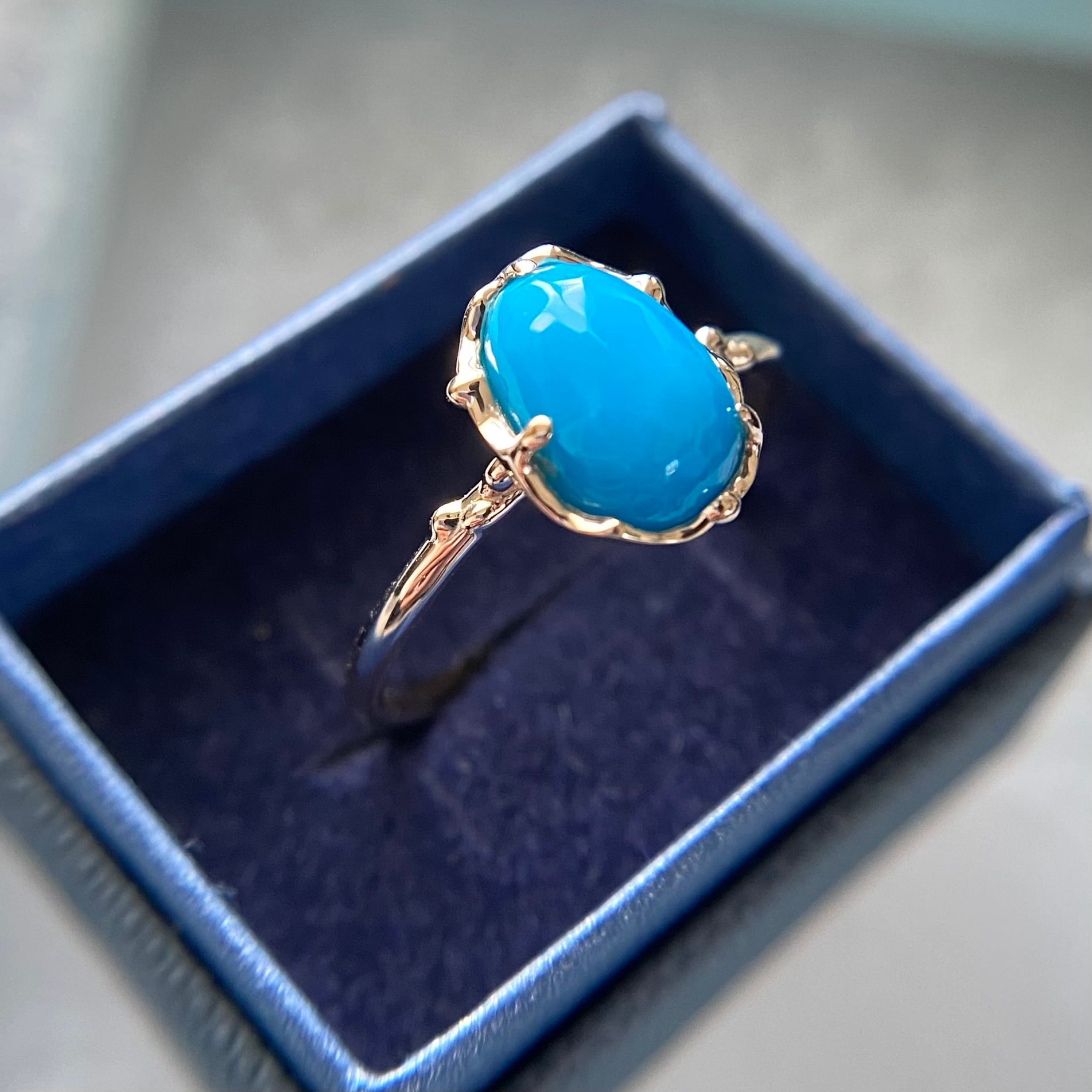 K10 天然トルコ石リング スリーピングビューティー産原石から磨いた1点ものジュエリー!