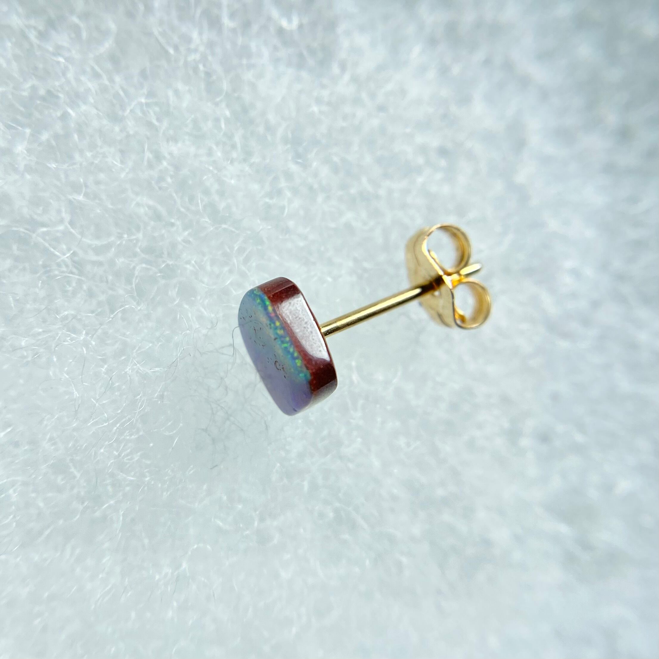 美しい遊色を放つ天然アイアンオパールの片耳ピアスです。