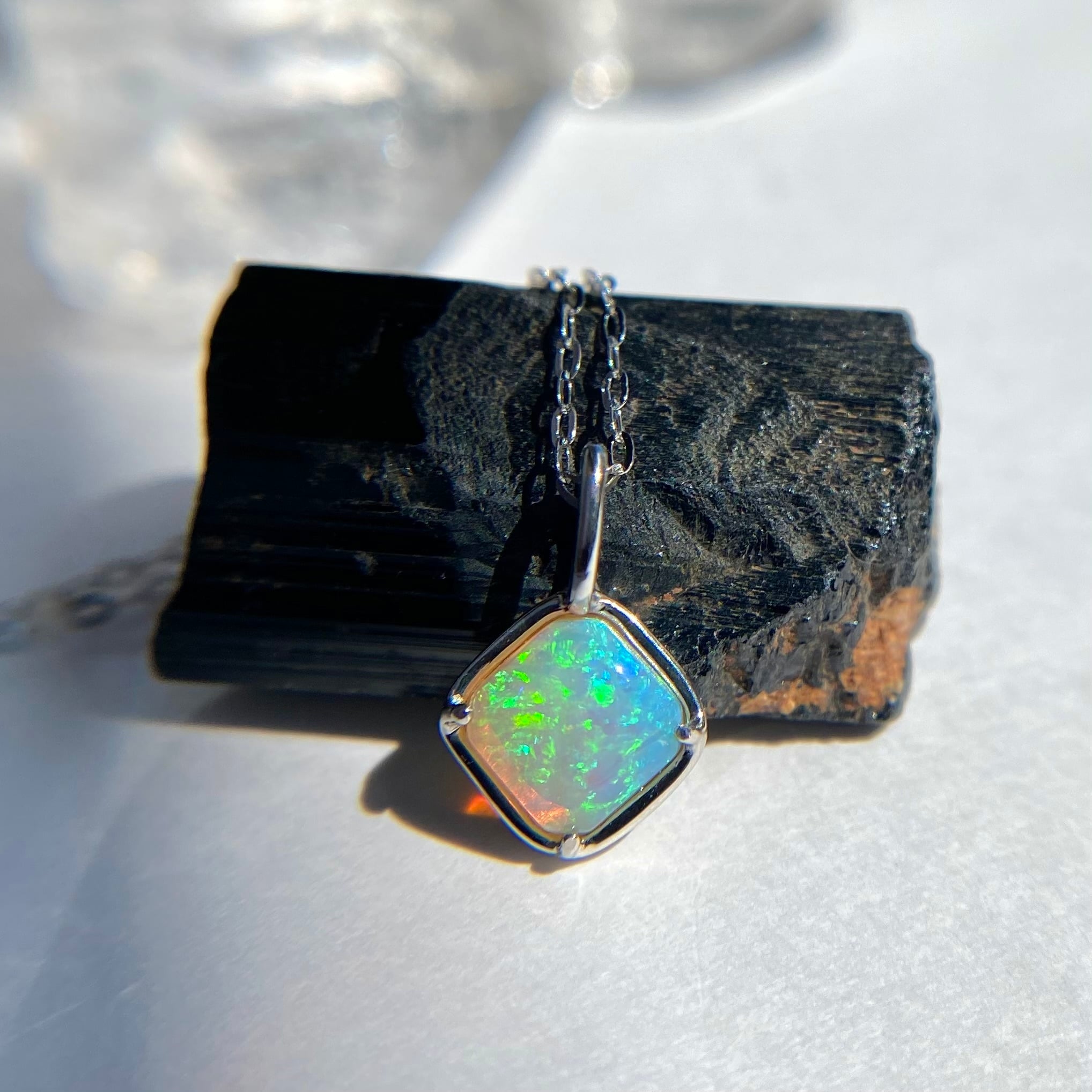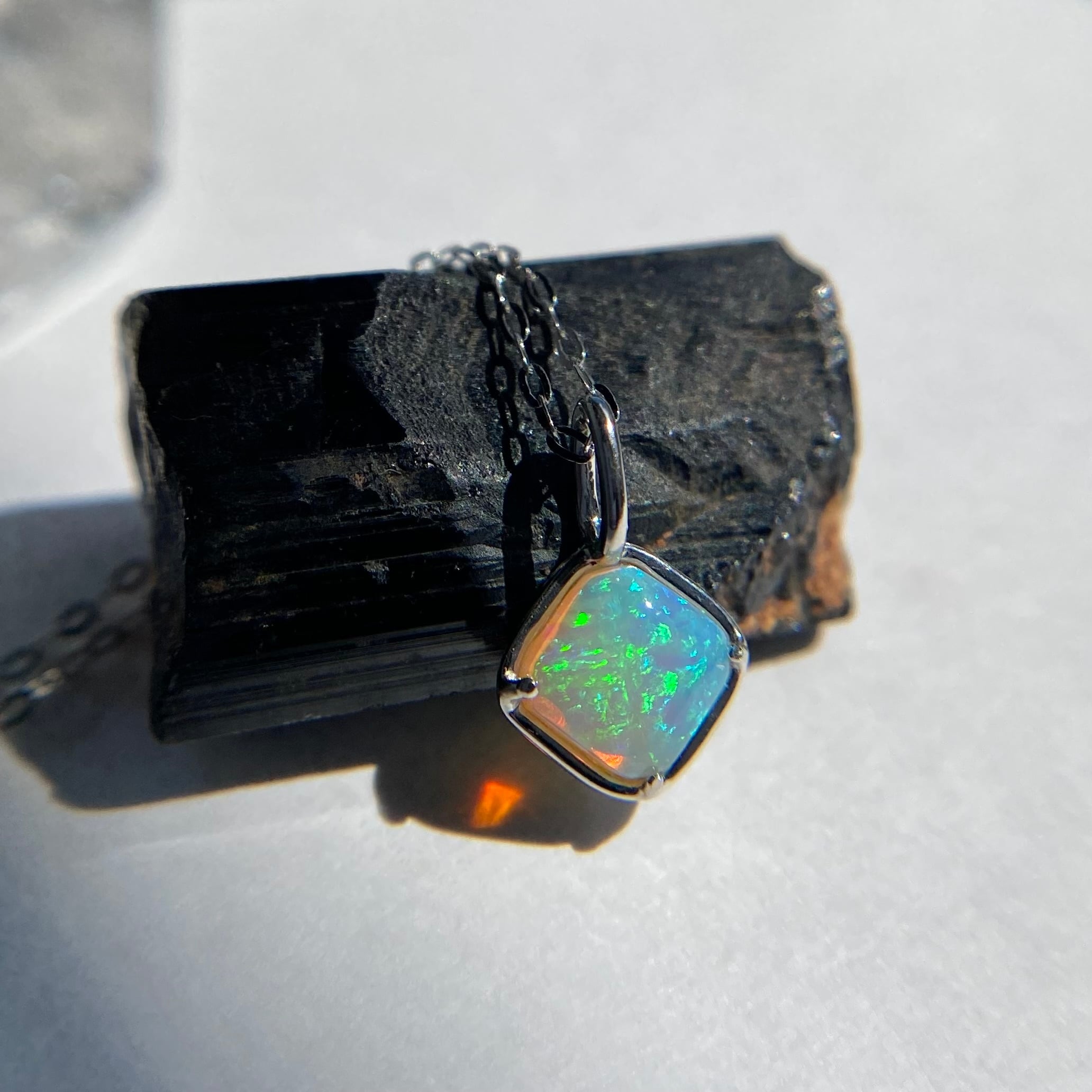 Pt900天然オパールネックレス オーストラリアLambina産原石から磨いた1点もの!