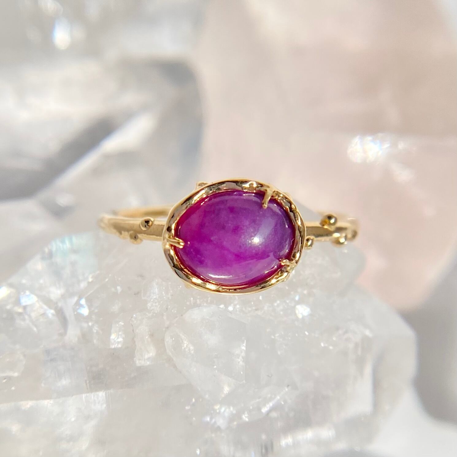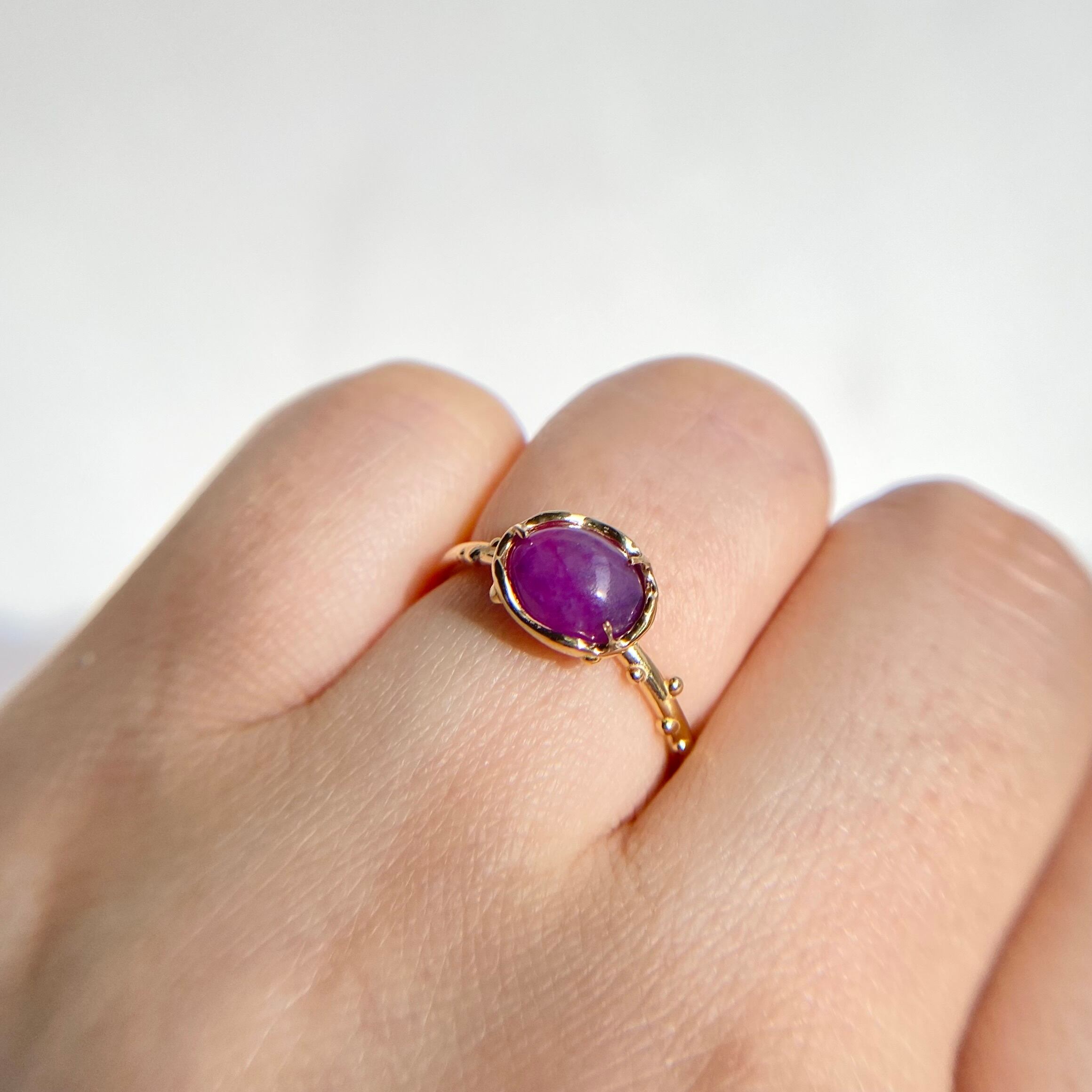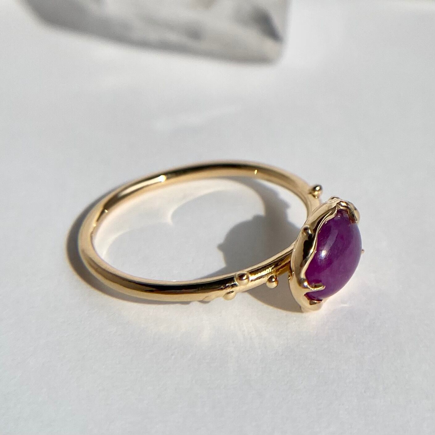 南アフリカ産の天然スギライト原石を磨き、リングを作りました。