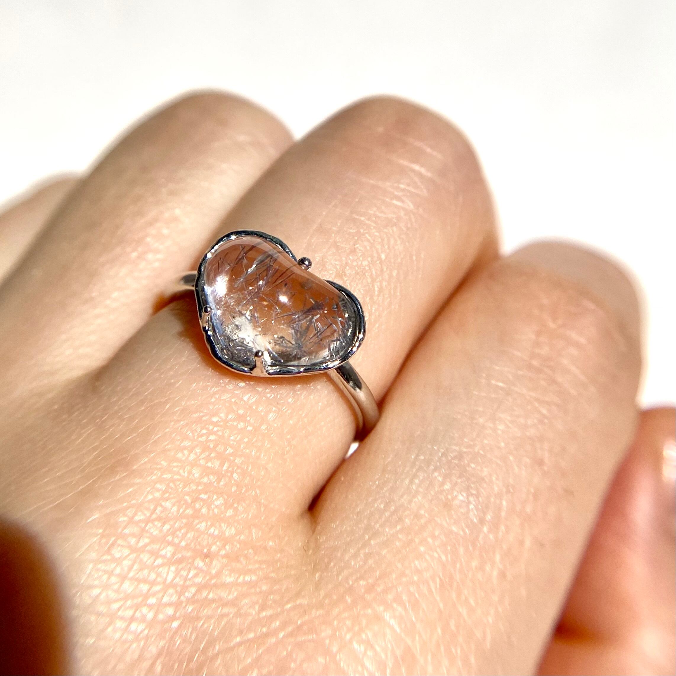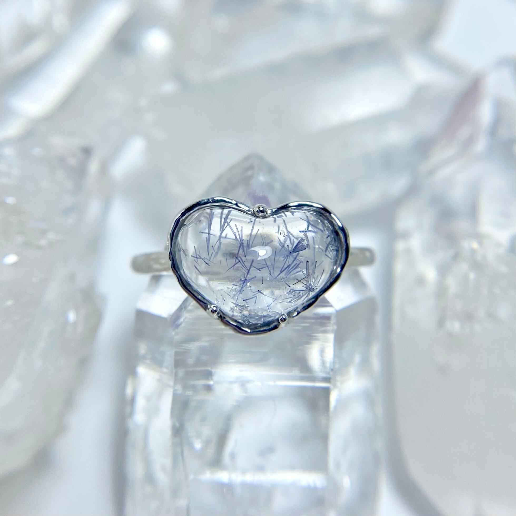 可愛いハートの天然デュモルチェライトインクォーツシルバーリングです。